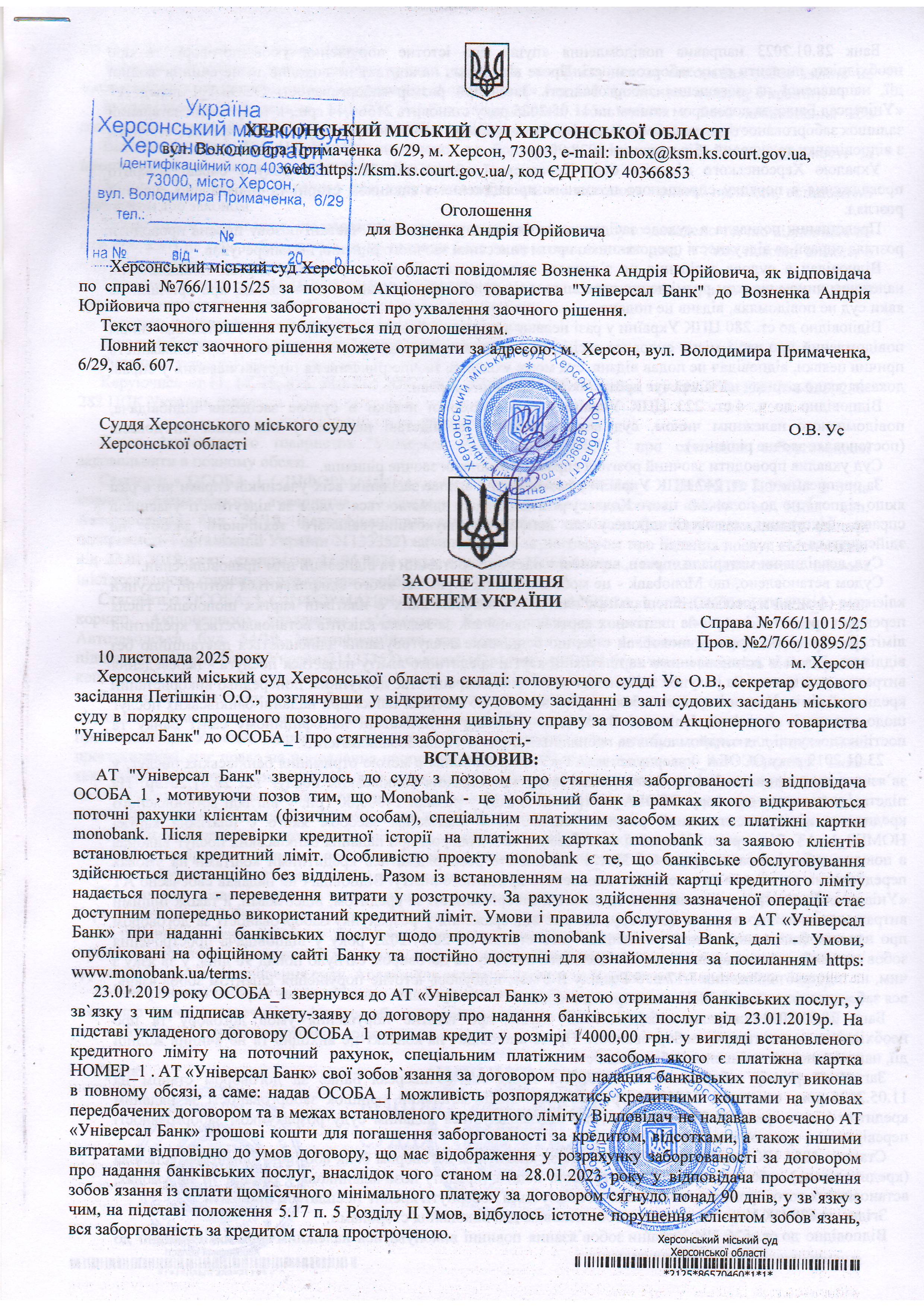 ОГОЛОШЕННЯ, УХВАЛИ ТА ЗАОЧНІ РІШЕННЯ