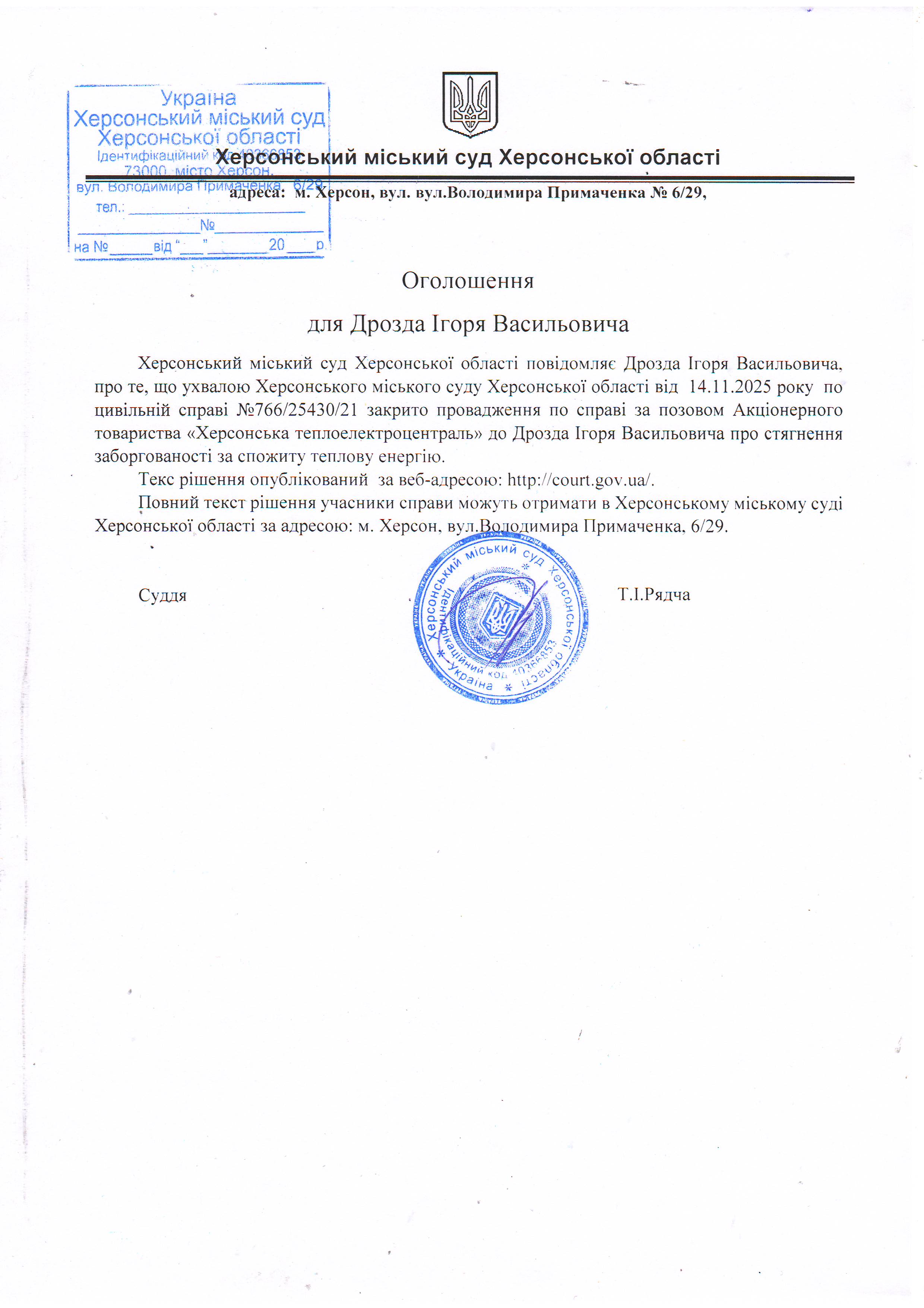 Інформація про місцезнаходження Херсонського міського суду Херсонської області