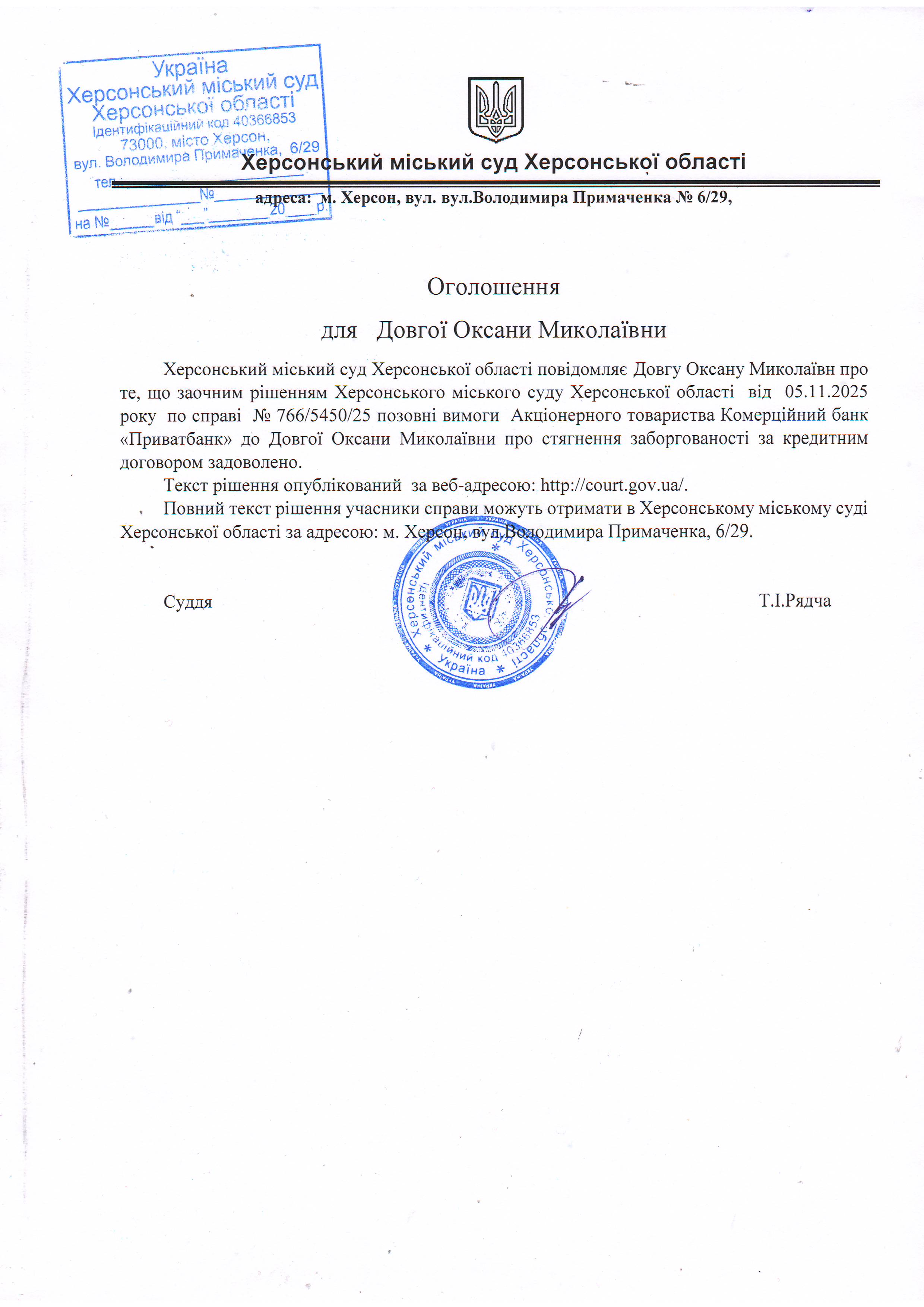 Інформація про місцезнаходження Херсонського міського суду Херсонської області