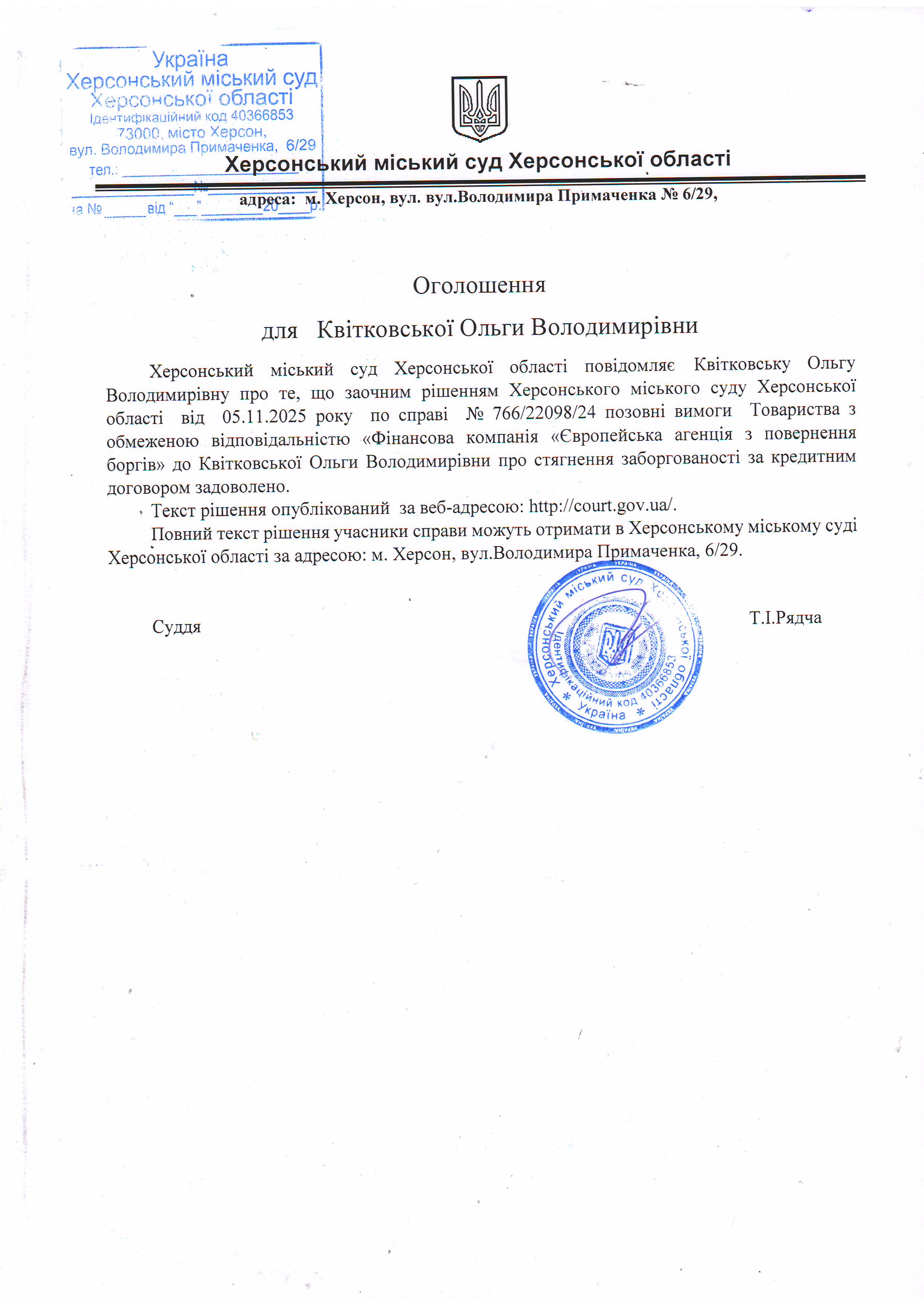 Інформація про місцезнаходження Херсонського міського суду Херсонської області