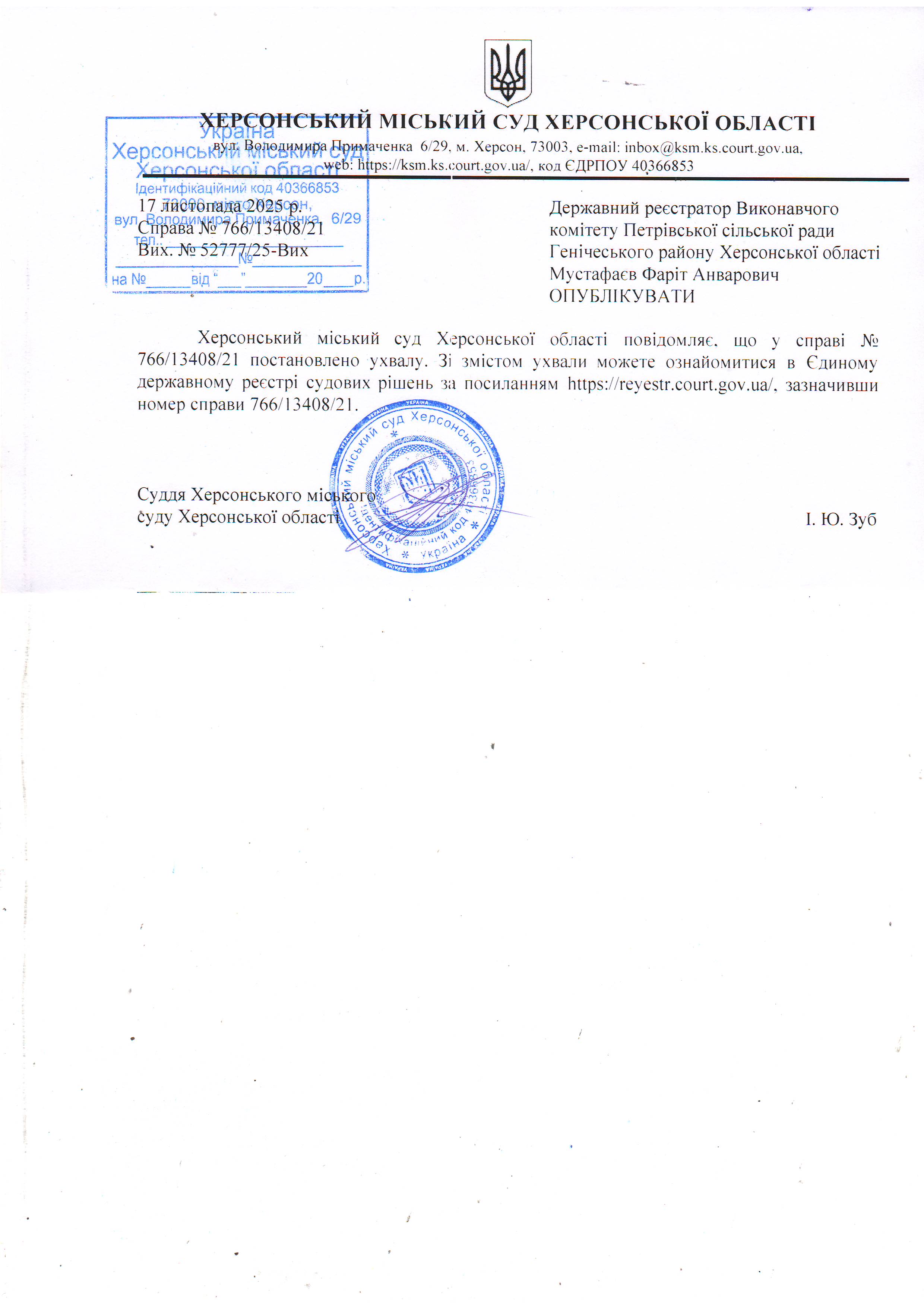 ПОВІДОМЛЕННЯ ПРО РОЗГЛЯД СПРАВИ БЕЗ ВИКЛИКУ СТОРІН
