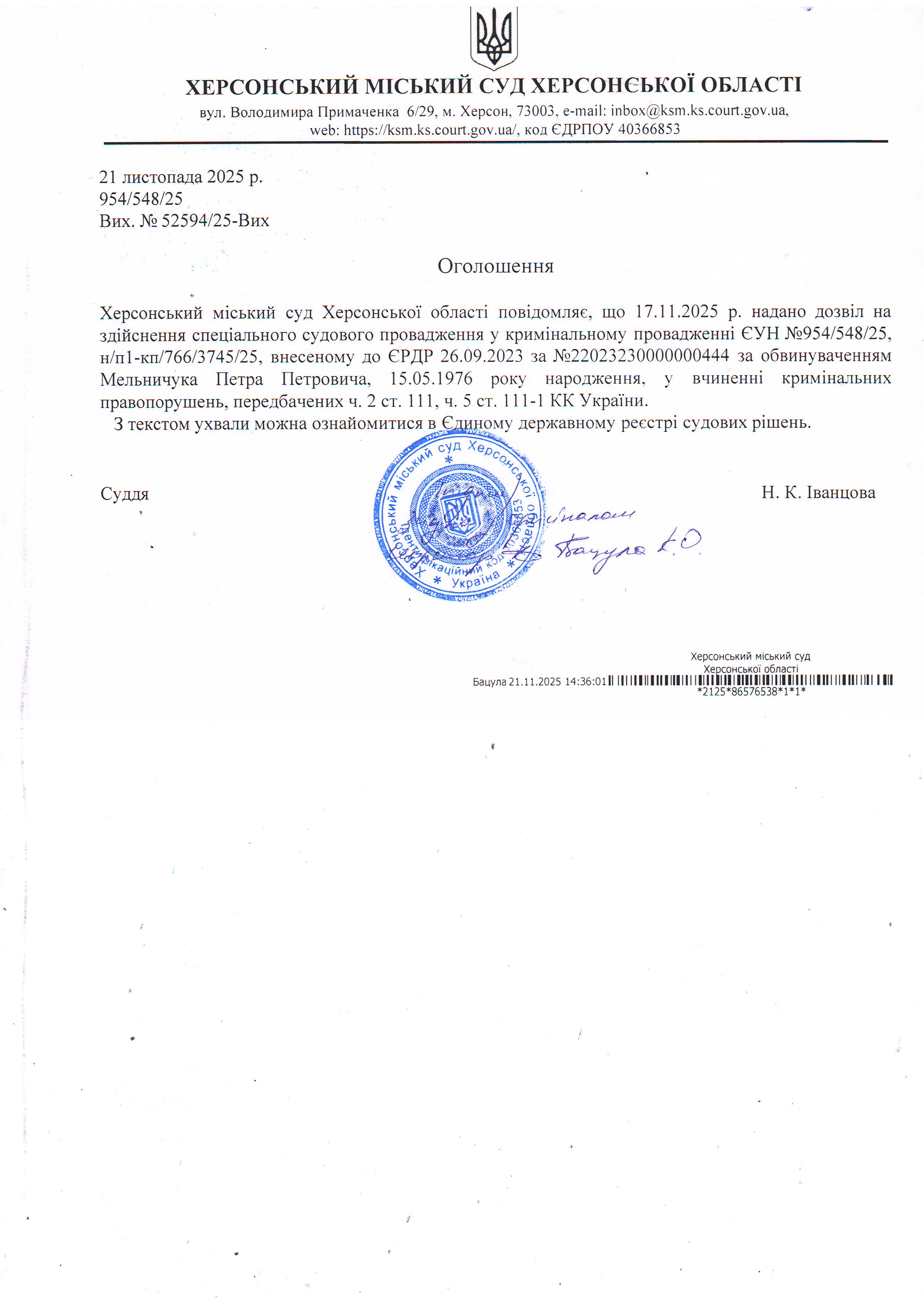 Інформація про місцезнаходження Херсонського міського суду Херсонської області