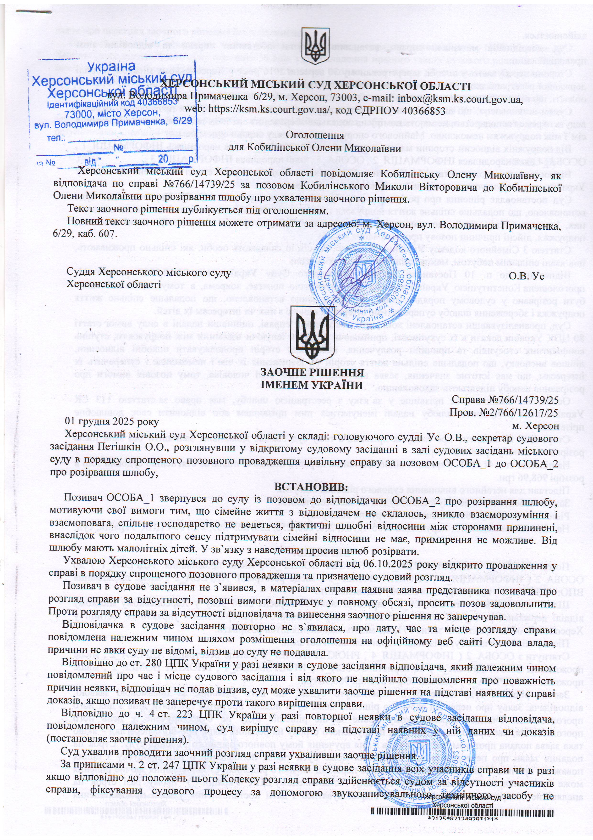 ОГОЛОШЕННЯ, УХВАЛИ ТА ЗАОЧНІ РІШЕННЯ