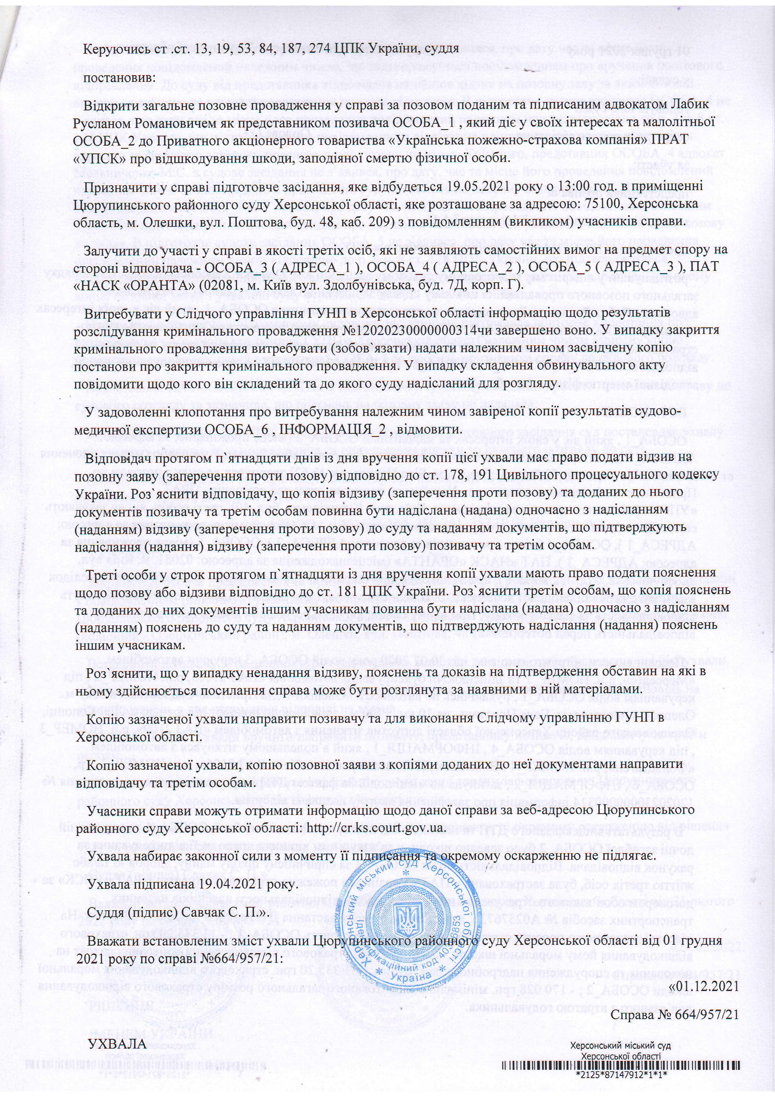ОГОЛОШЕННЯ, УХВАЛИ ТА ЗАОЧНІ РІШЕННЯ