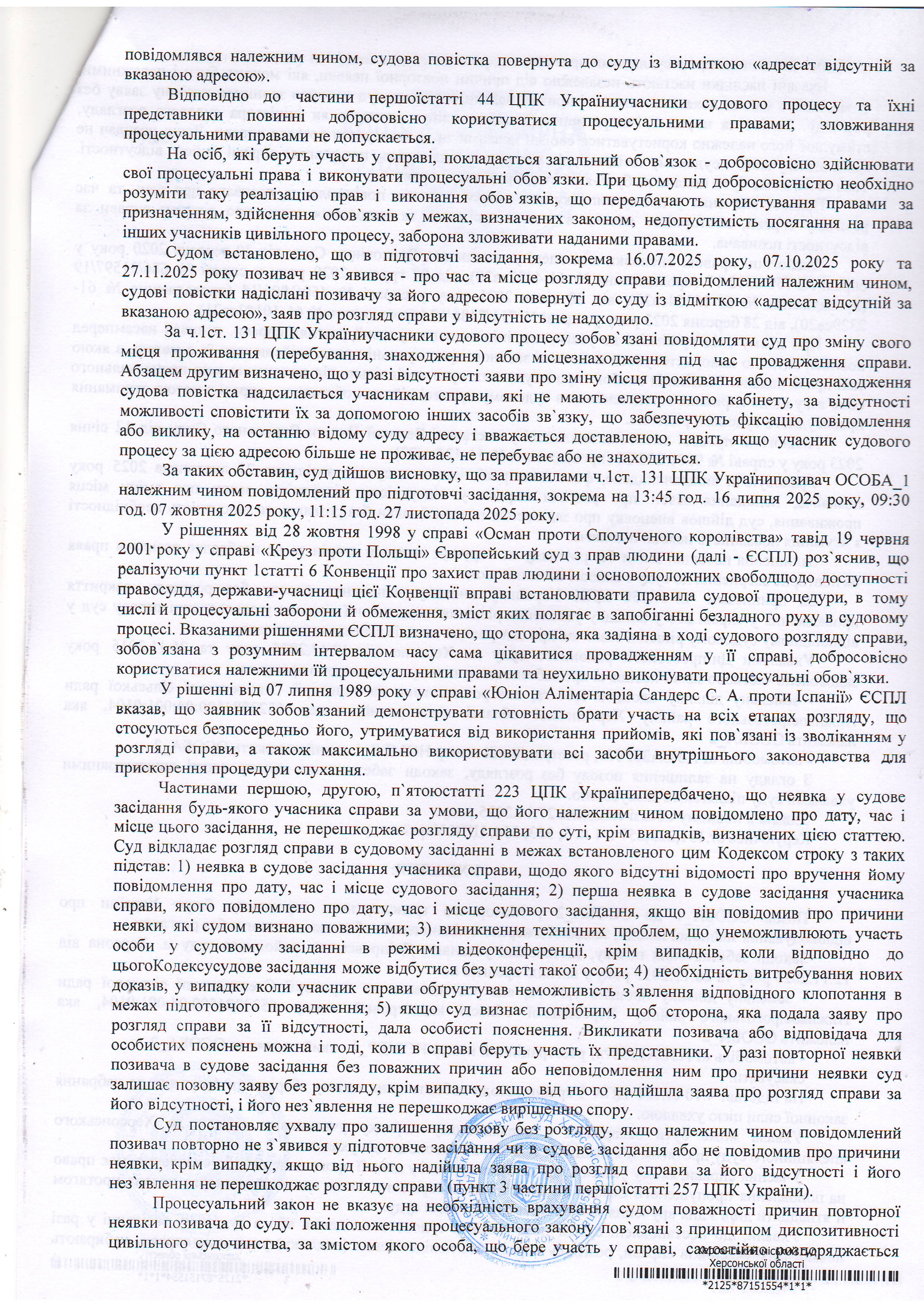 ПОВІДОМЛЕННЯ ПРО РОЗГЛЯД СПРАВИ БЕЗ ВИКЛИКУ СТОРІН