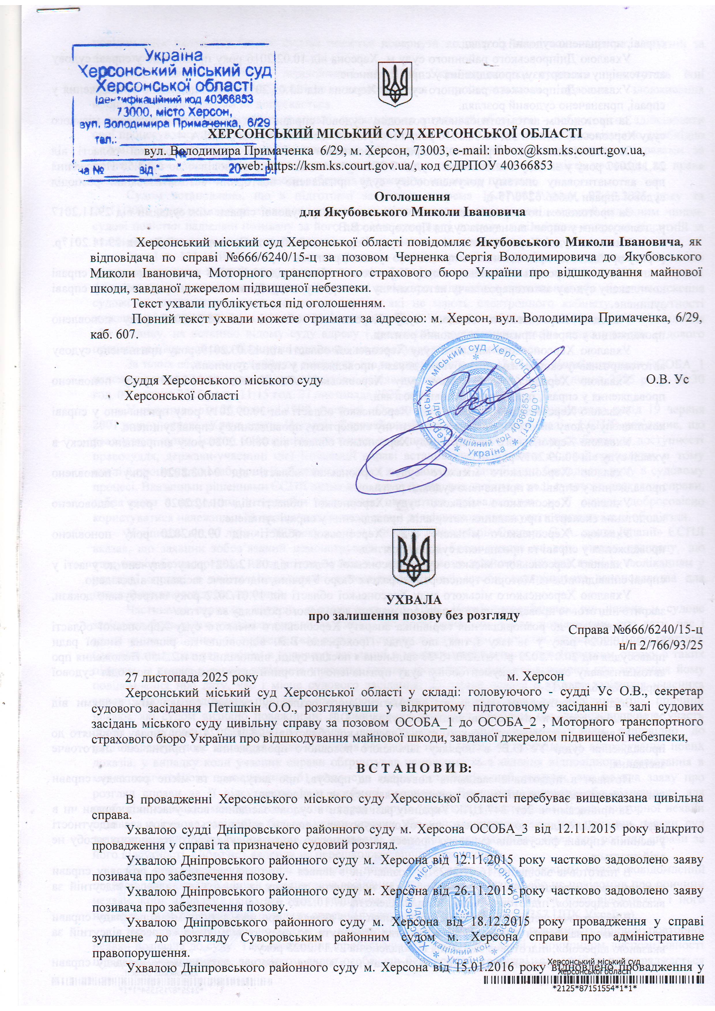 ОГОЛОШЕННЯ ПРО ВИКЛИК ДО СУДУ