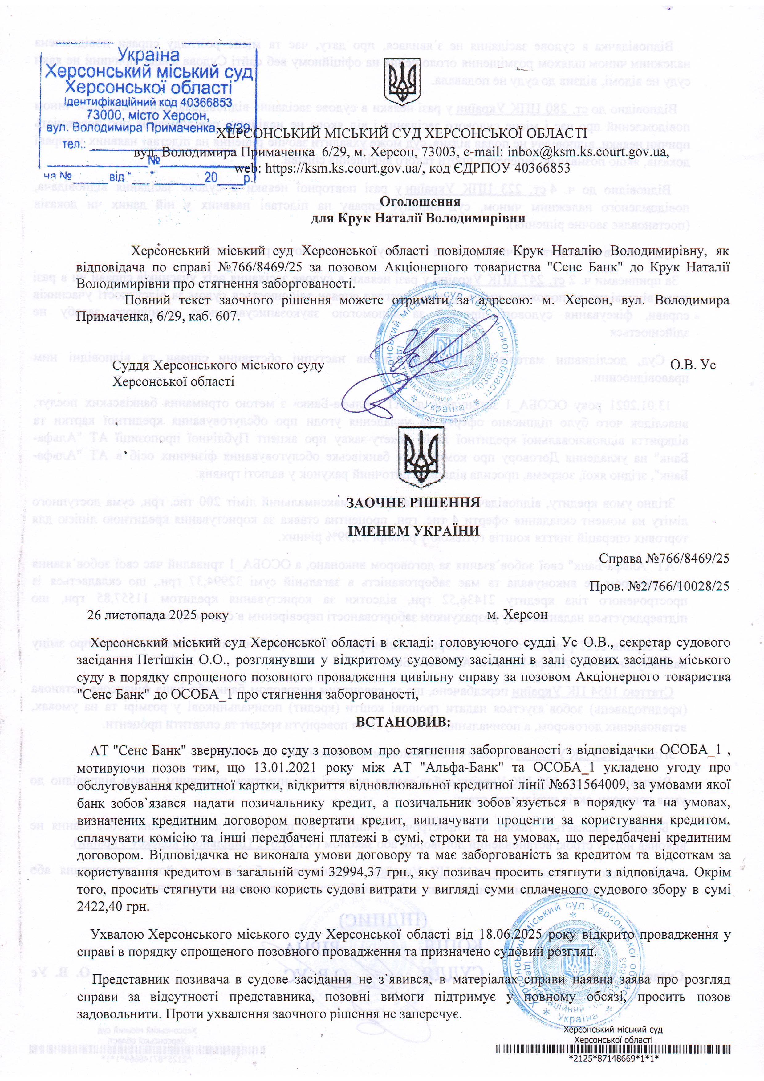 ОГОЛОШЕННЯ, УХВАЛИ ТА ЗАОЧНІ РІШЕННЯ