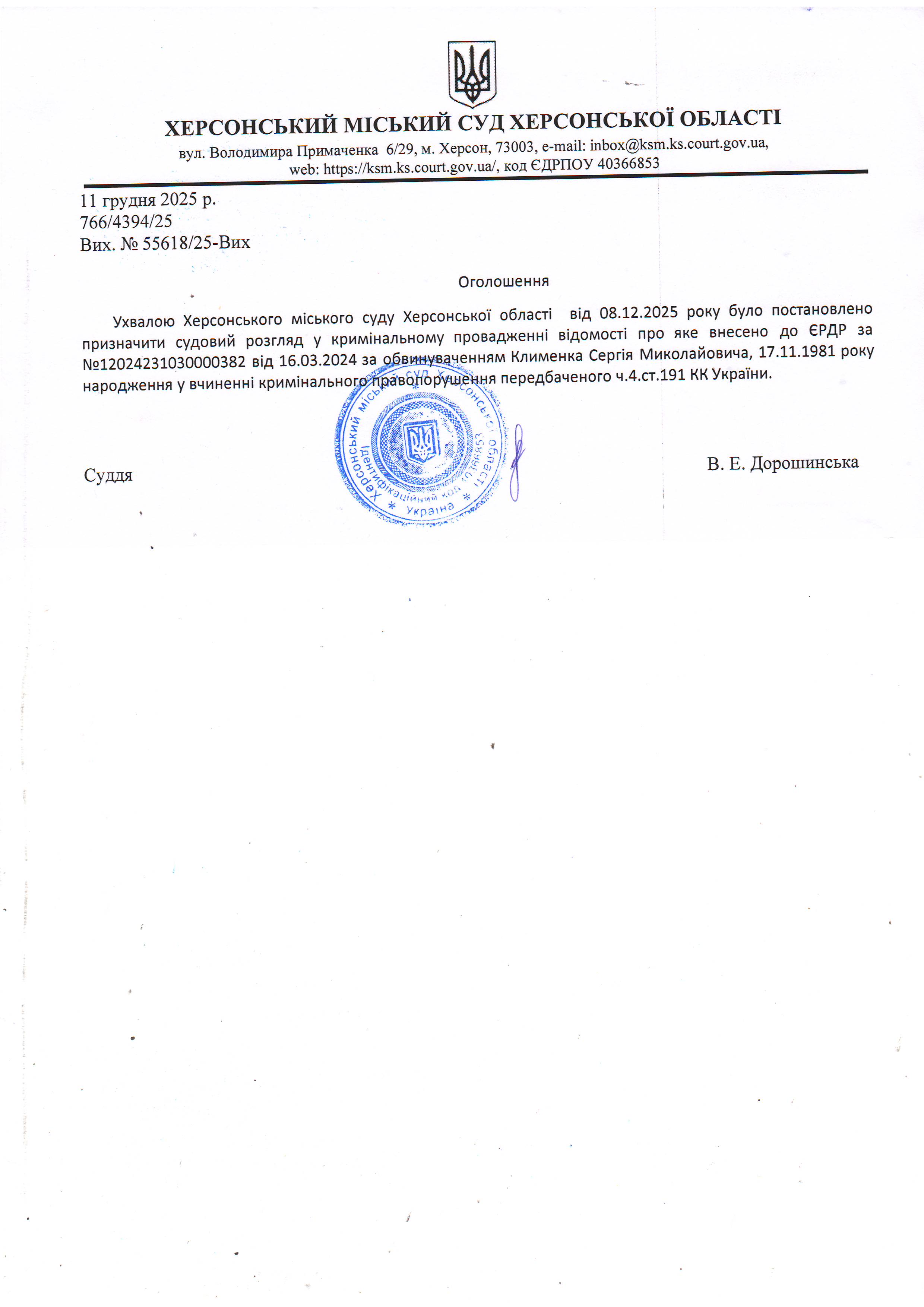 ОГОЛОШЕННЯ ПРО ВИКЛИК ДО СУДУ