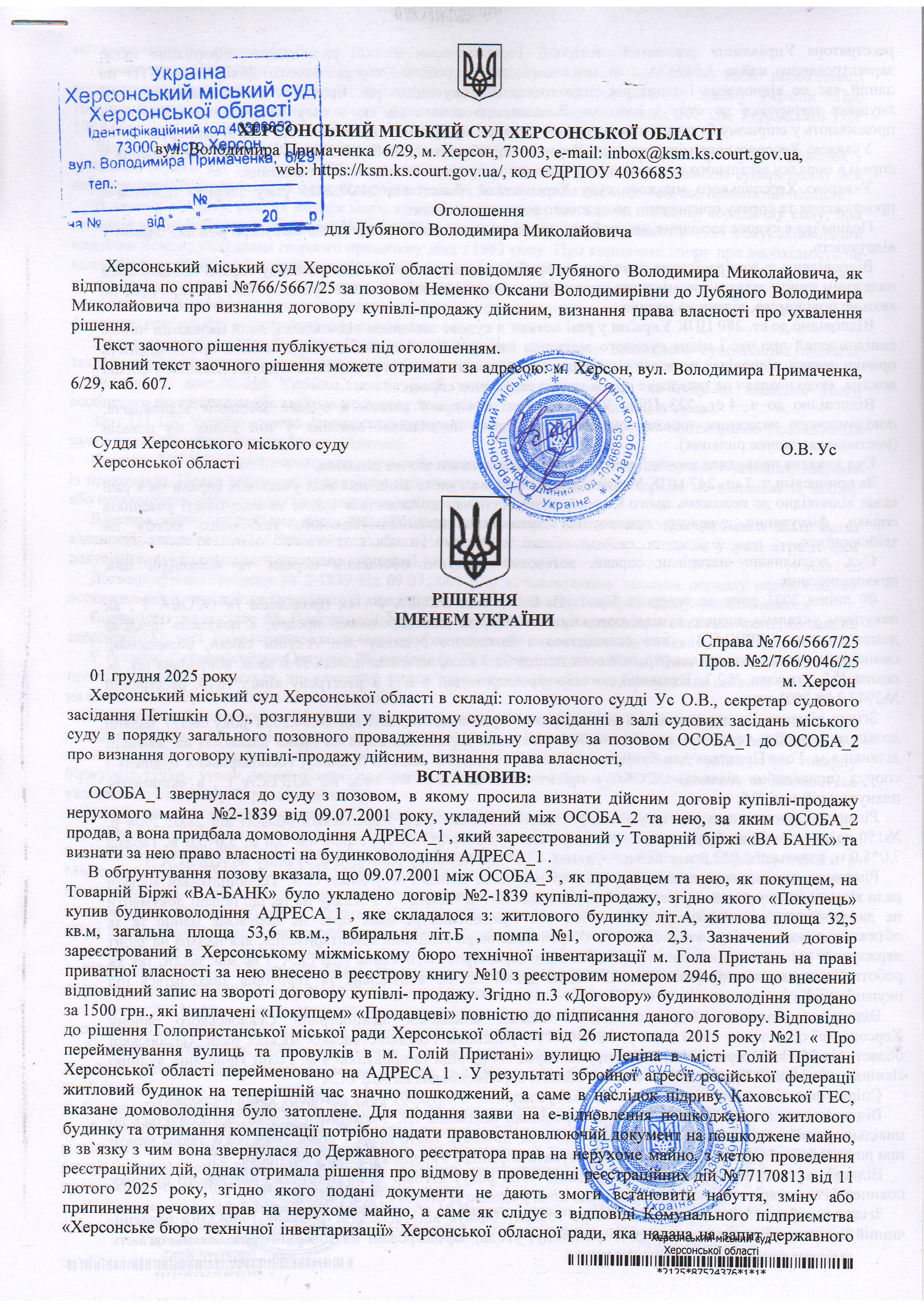 ОГОЛОШЕННЯ, УХВАЛИ ТА ЗАОЧНІ РІШЕННЯ