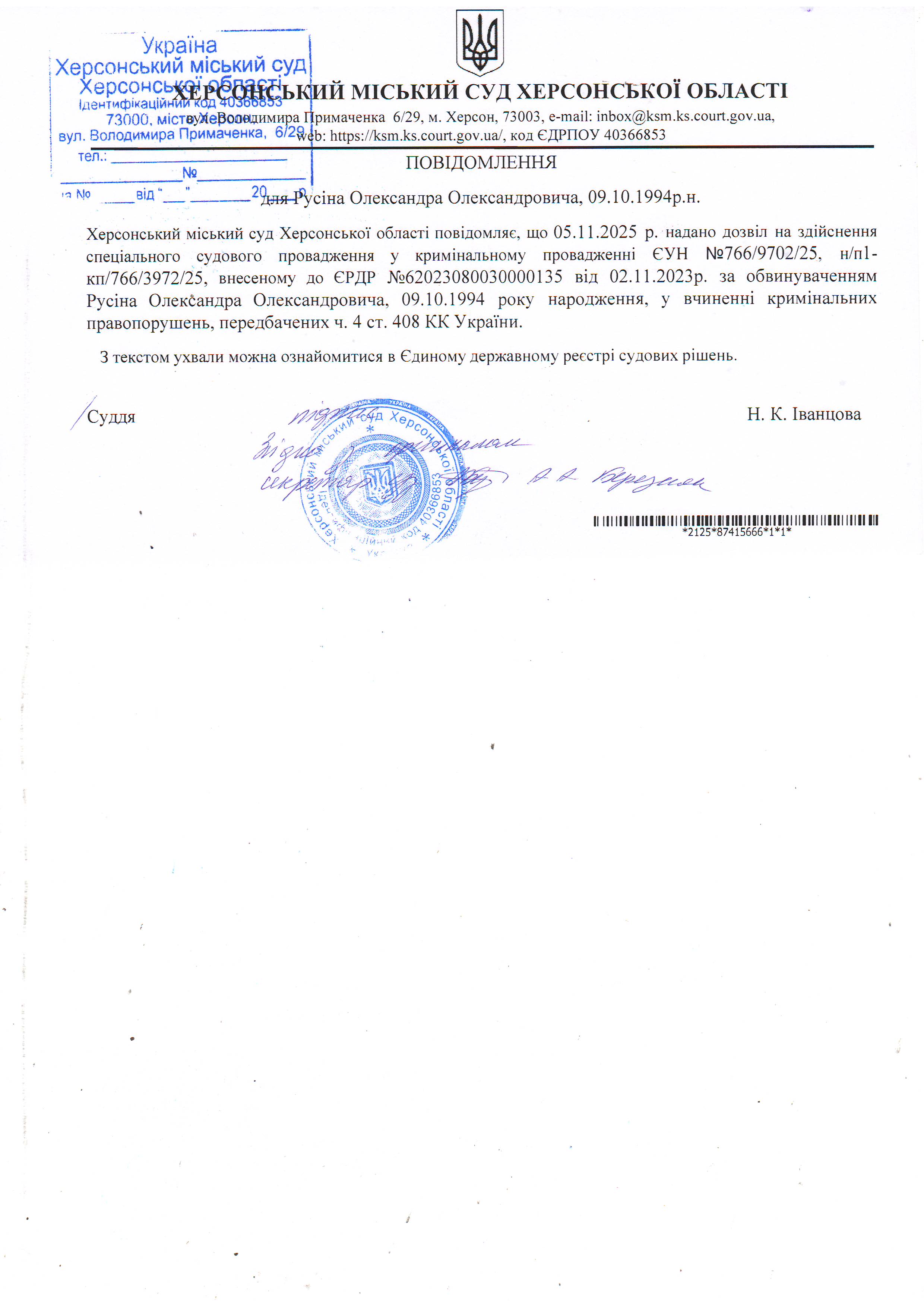 Херсонський міський суд Херсонської області