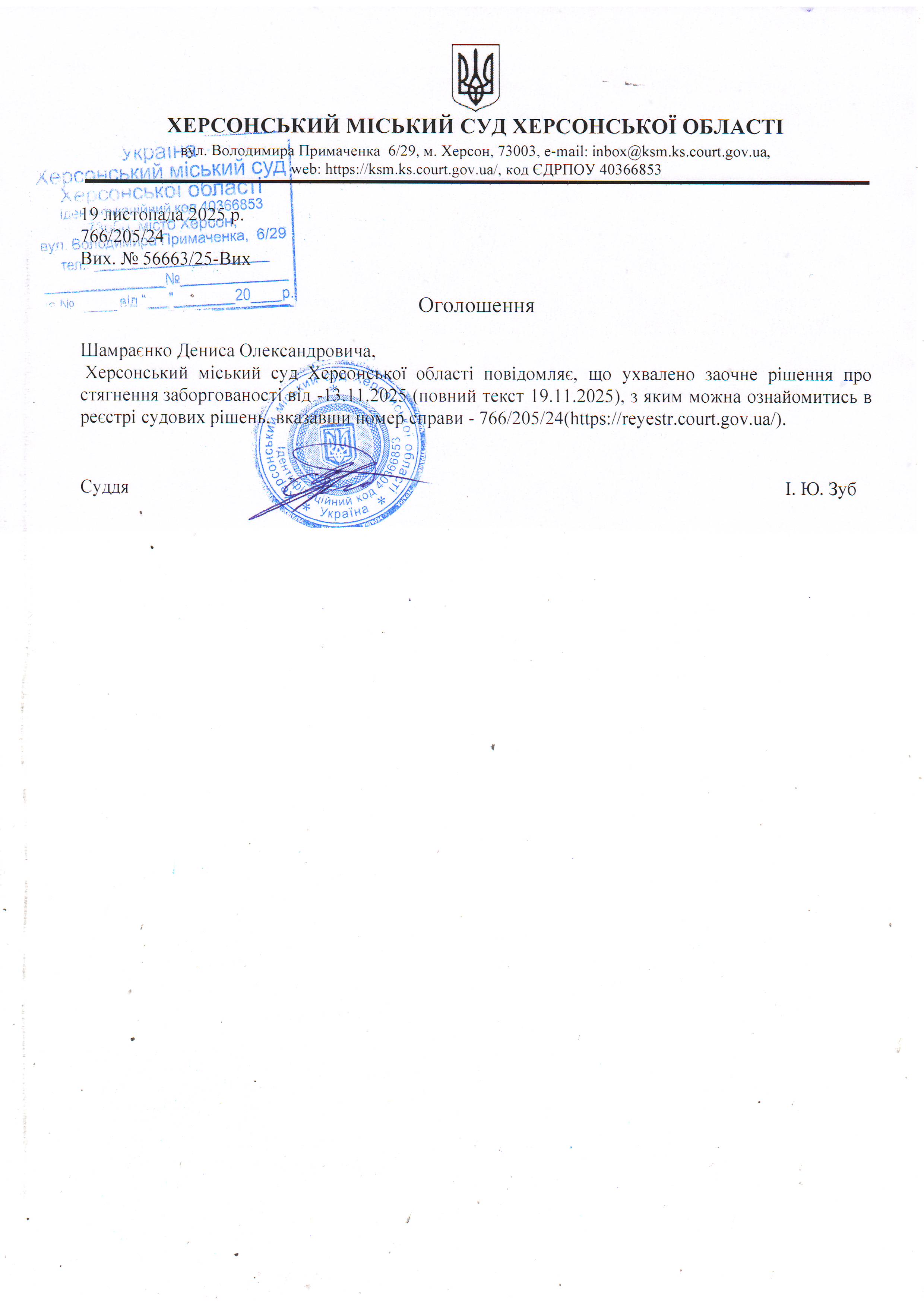 Оголошення для Шамраєнка Дениса Олександровича про ухвалення заочного рішення