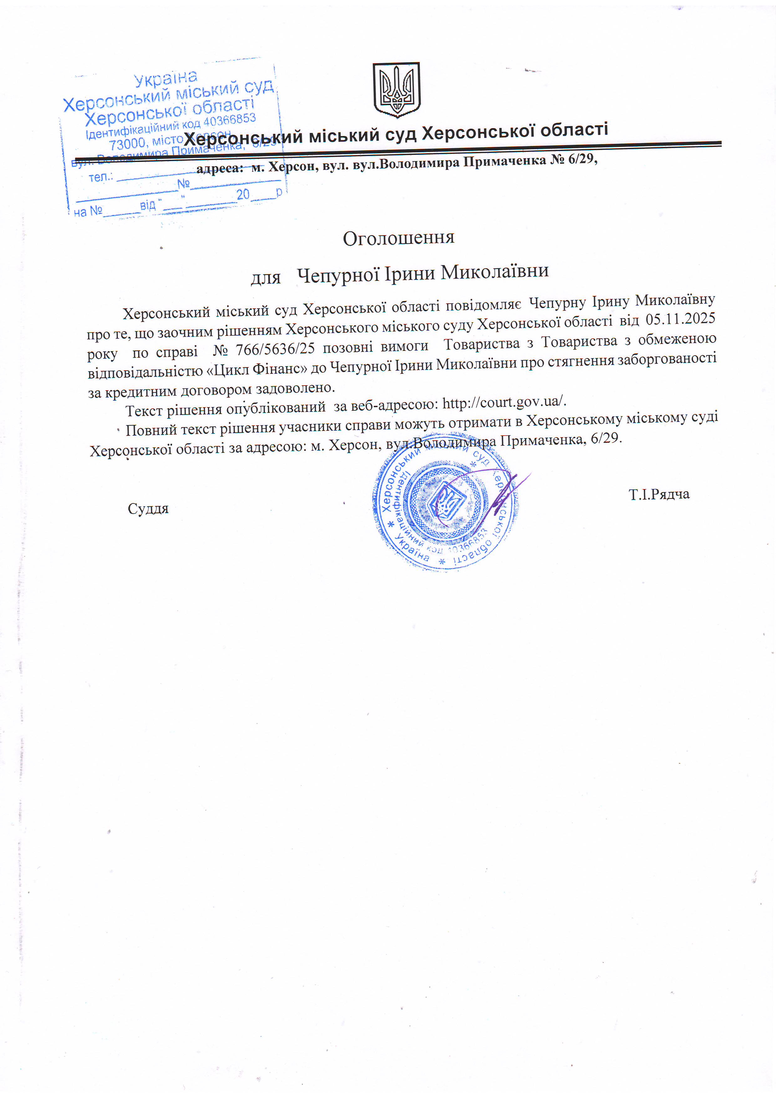Інформація про місцезнаходження Херсонського міського суду Херсонської області