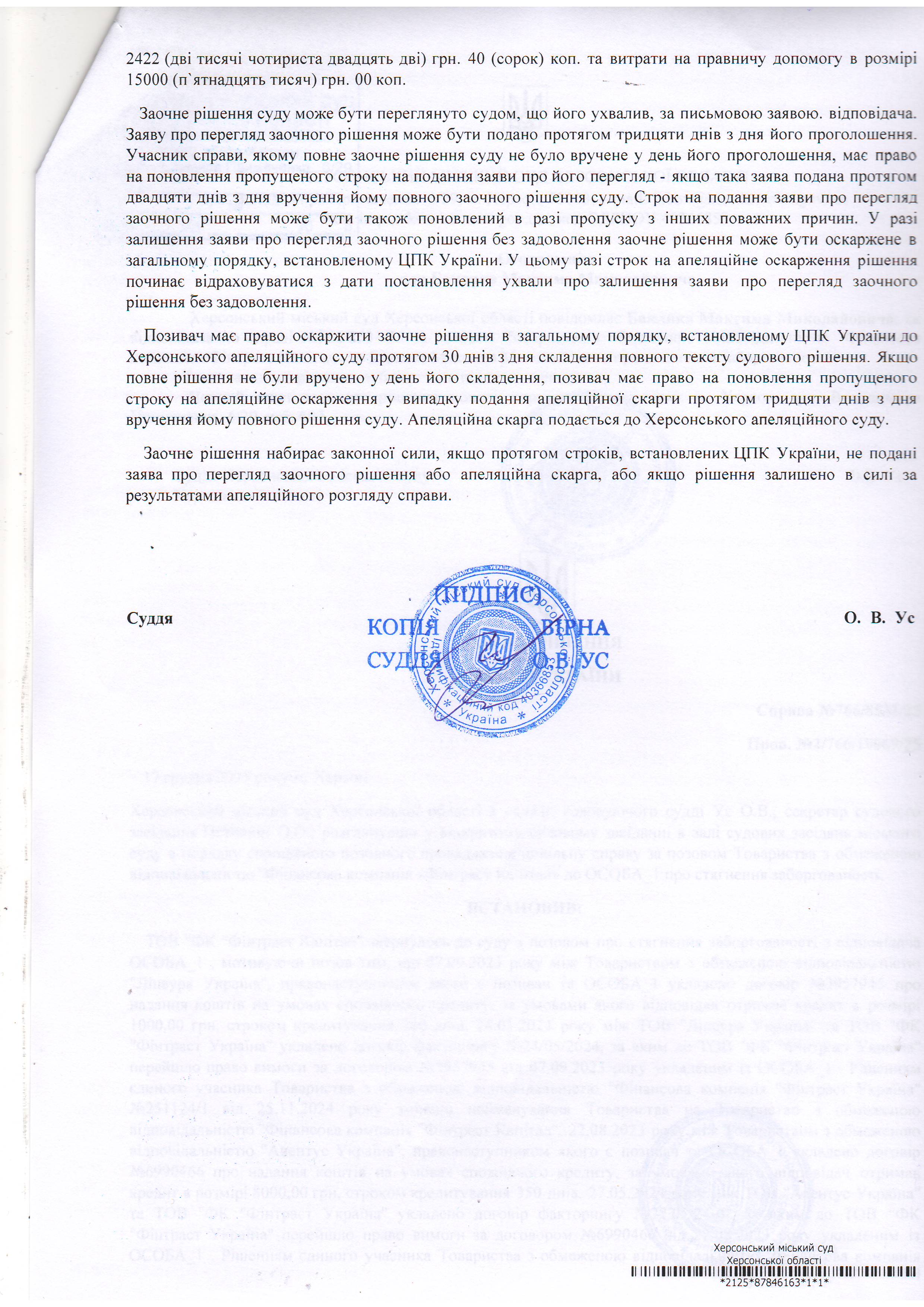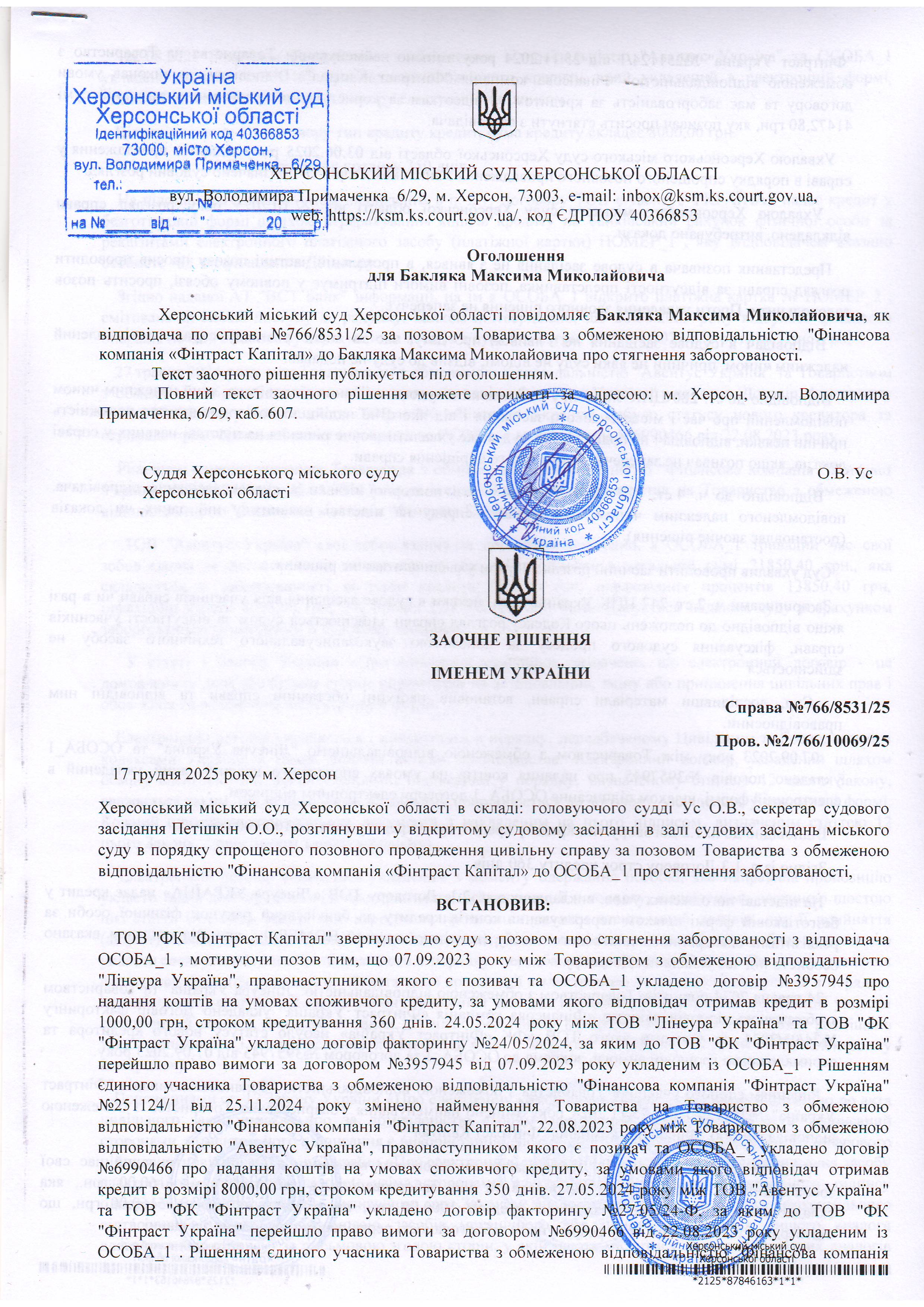 ОГОЛОШЕННЯ, УХВАЛИ ТА ЗАОЧНІ РІШЕННЯ