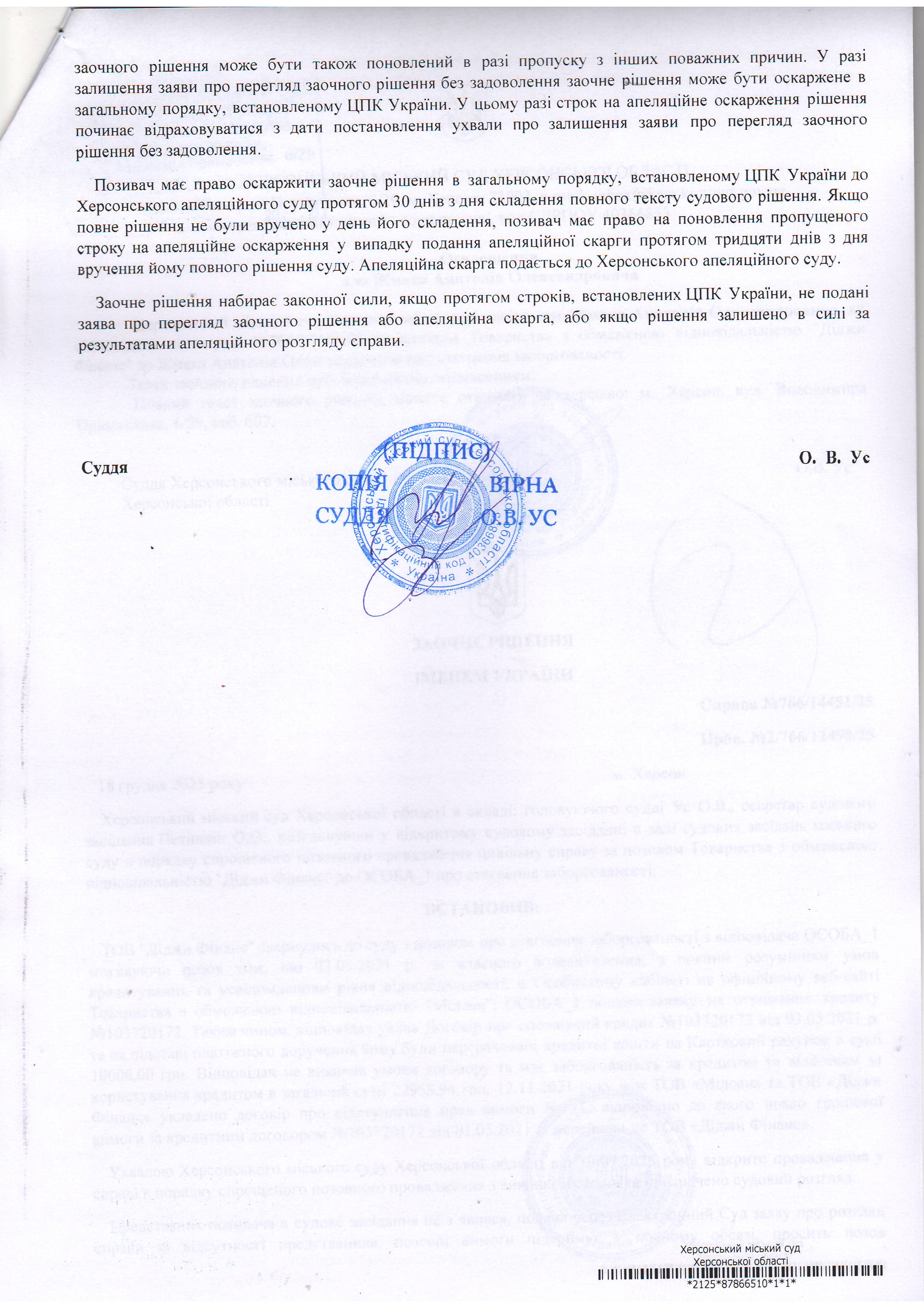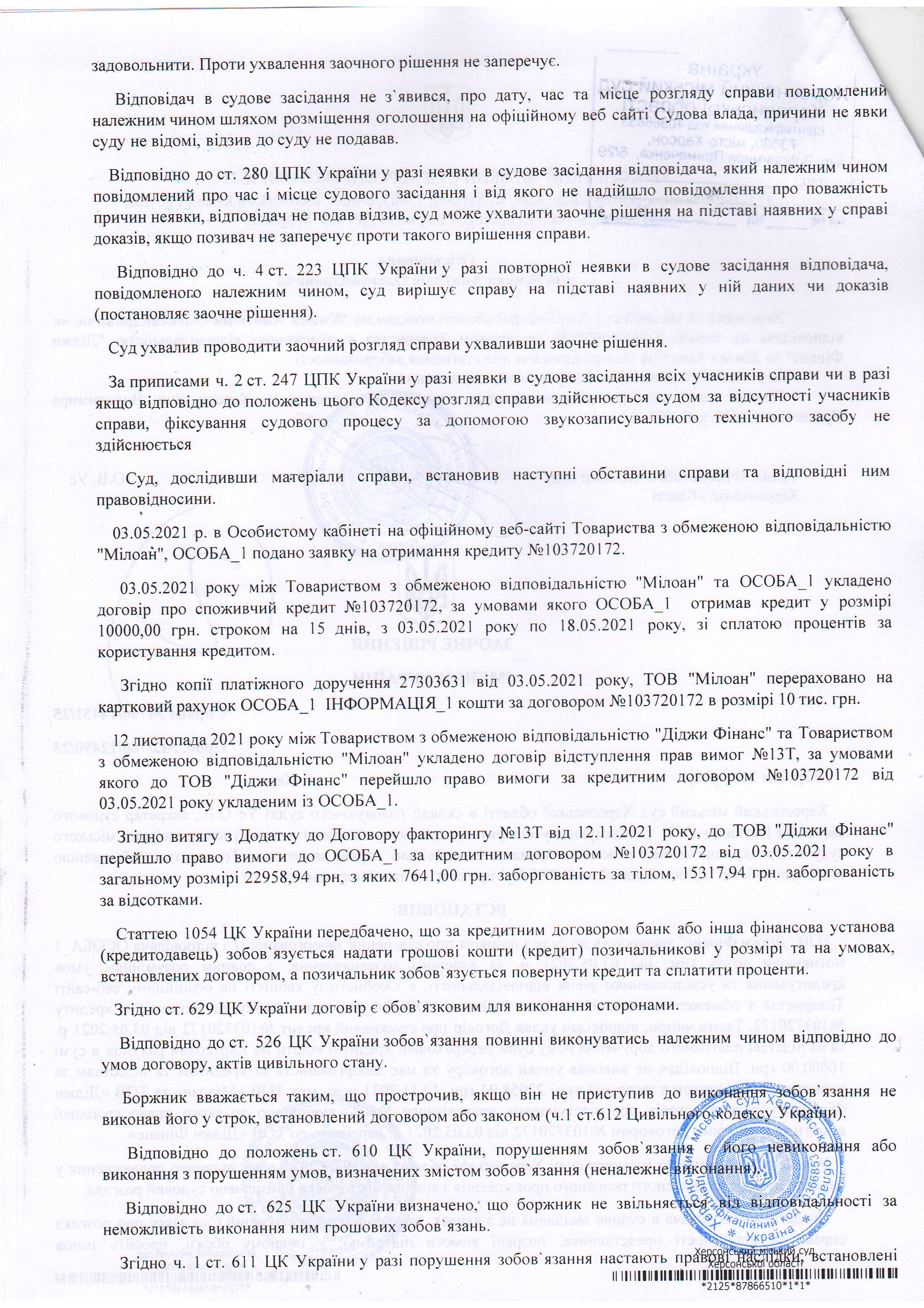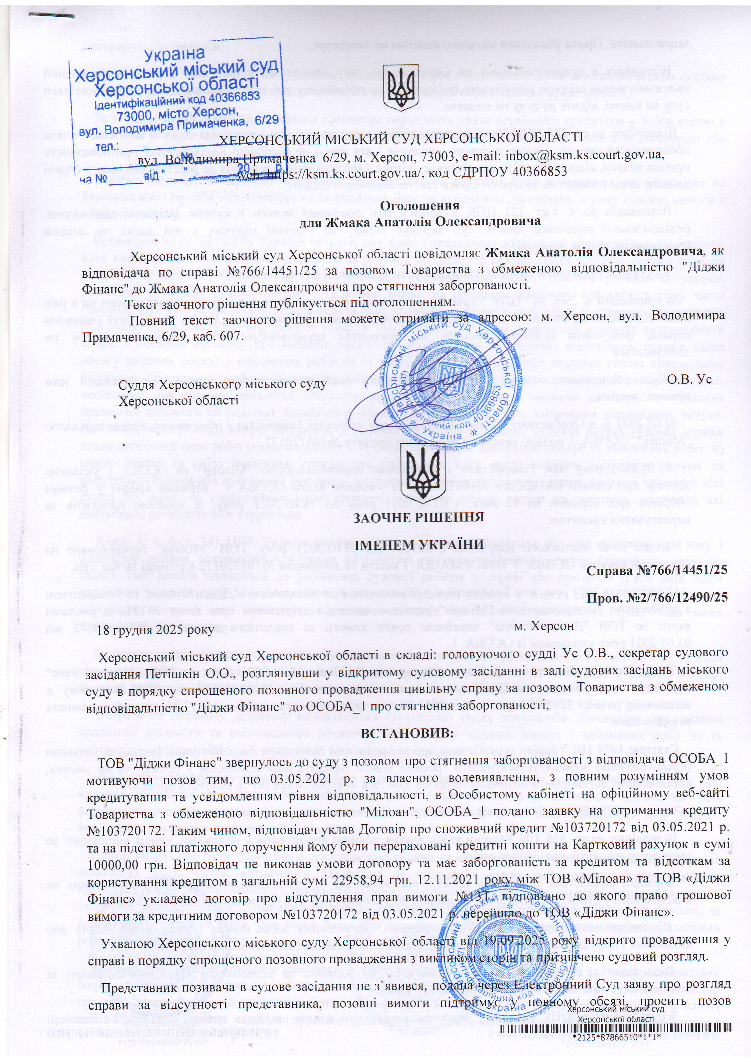 ОГОЛОШЕННЯ, УХВАЛИ ТА ЗАОЧНІ РІШЕННЯ