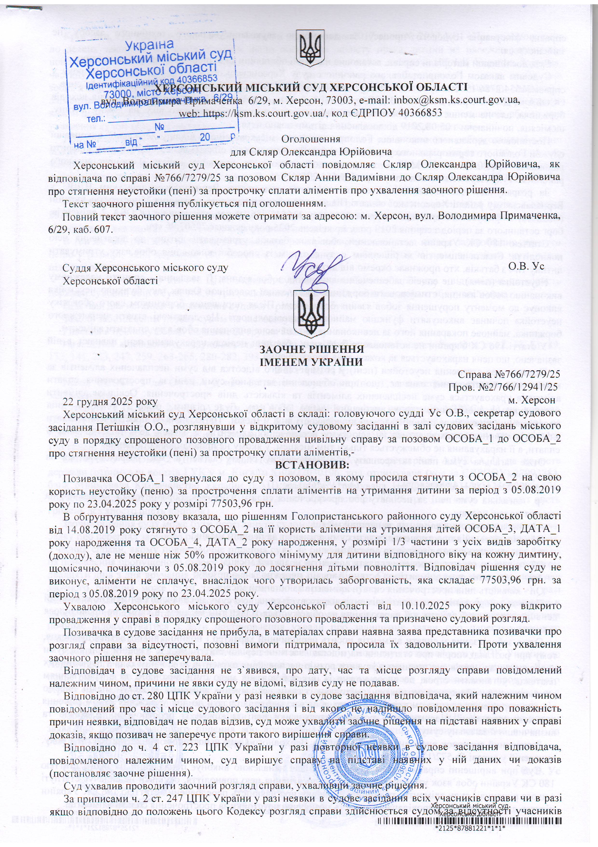 ОГОЛОШЕННЯ, УХВАЛИ ТА ЗАОЧНІ РІШЕННЯ
