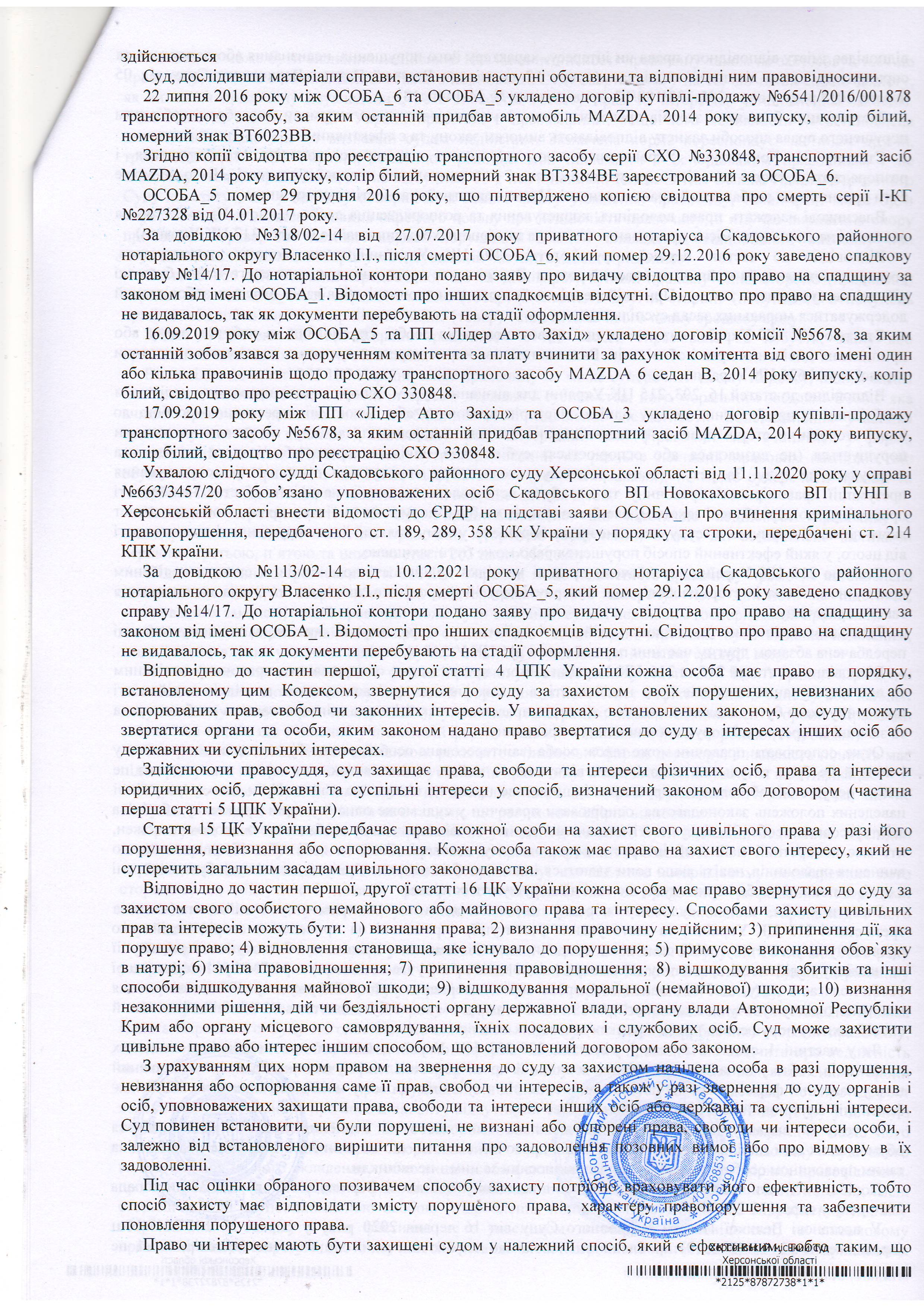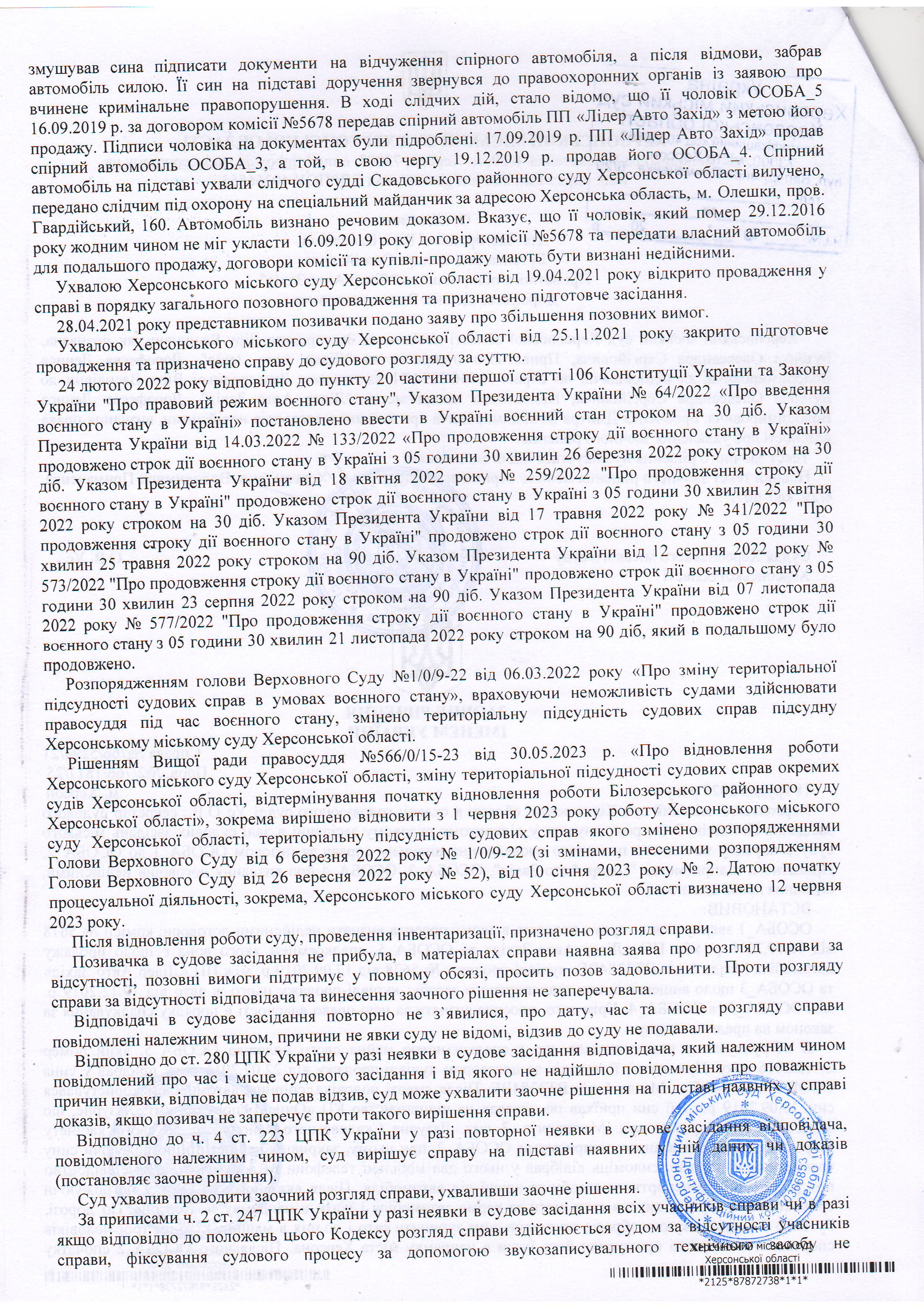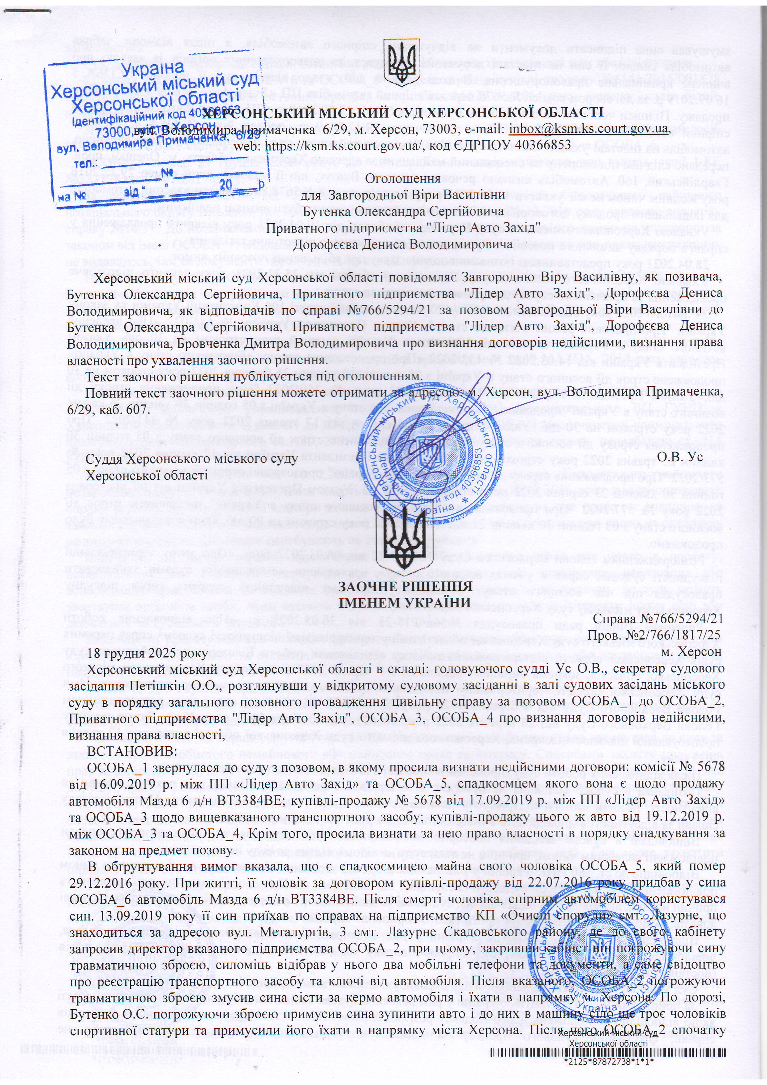 ОГОЛОШЕННЯ, УХВАЛИ ТА ЗАОЧНІ РІШЕННЯ