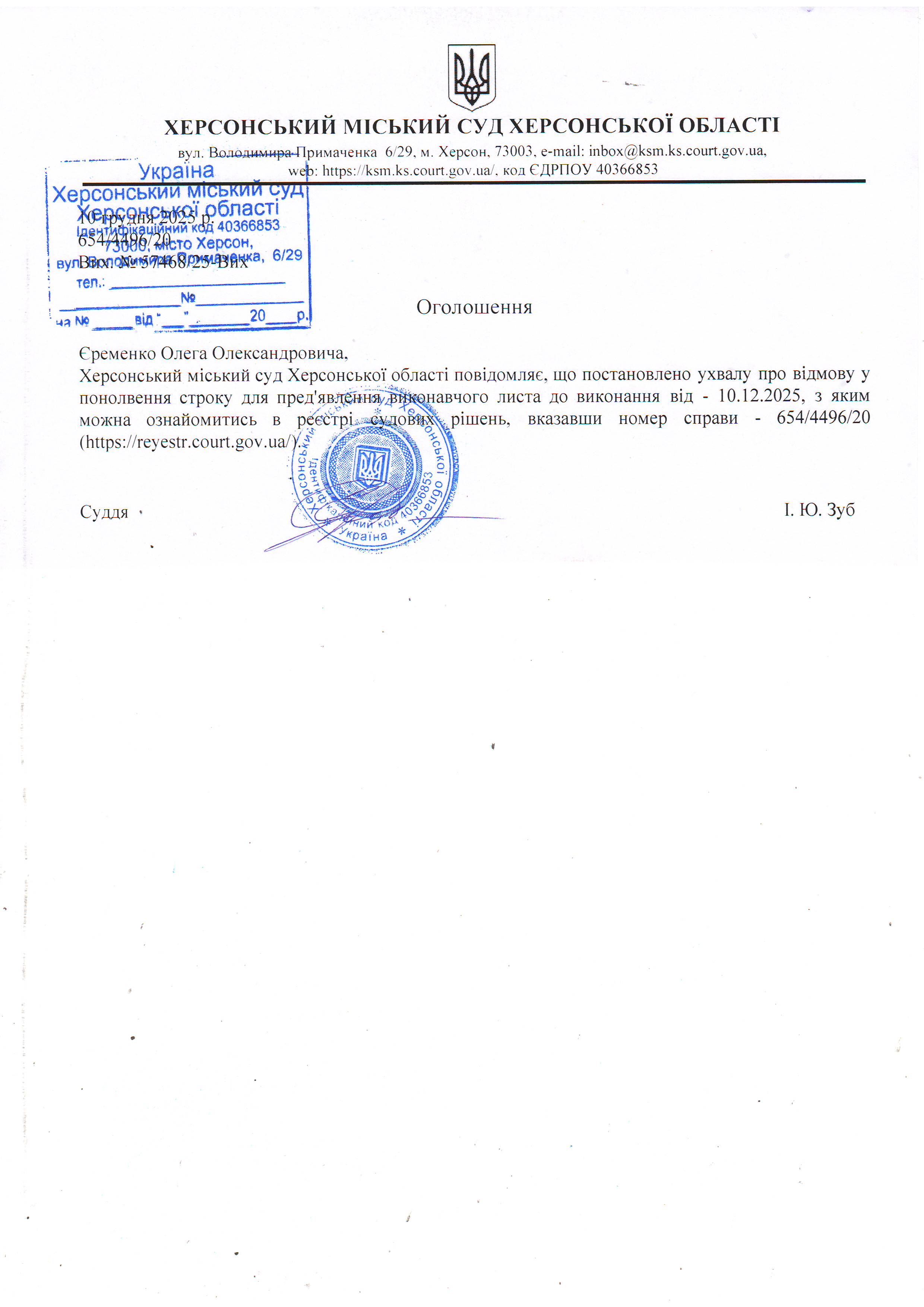 ОГОЛОШЕННЯ, УХВАЛИ ТА ЗАОЧНІ РІШЕННЯ