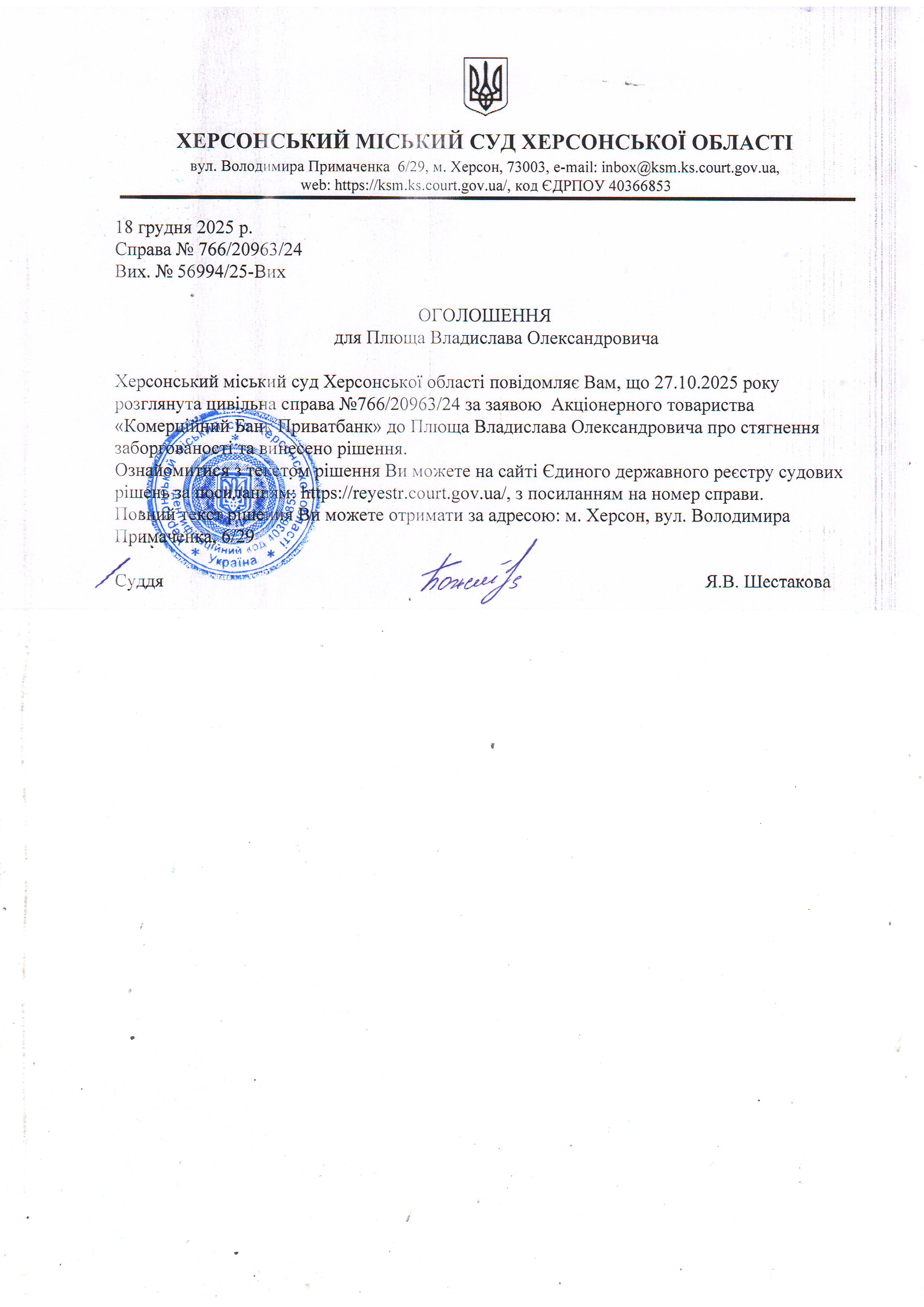 Інформація про місцезнаходження Херсонського міського суду Херсонської області