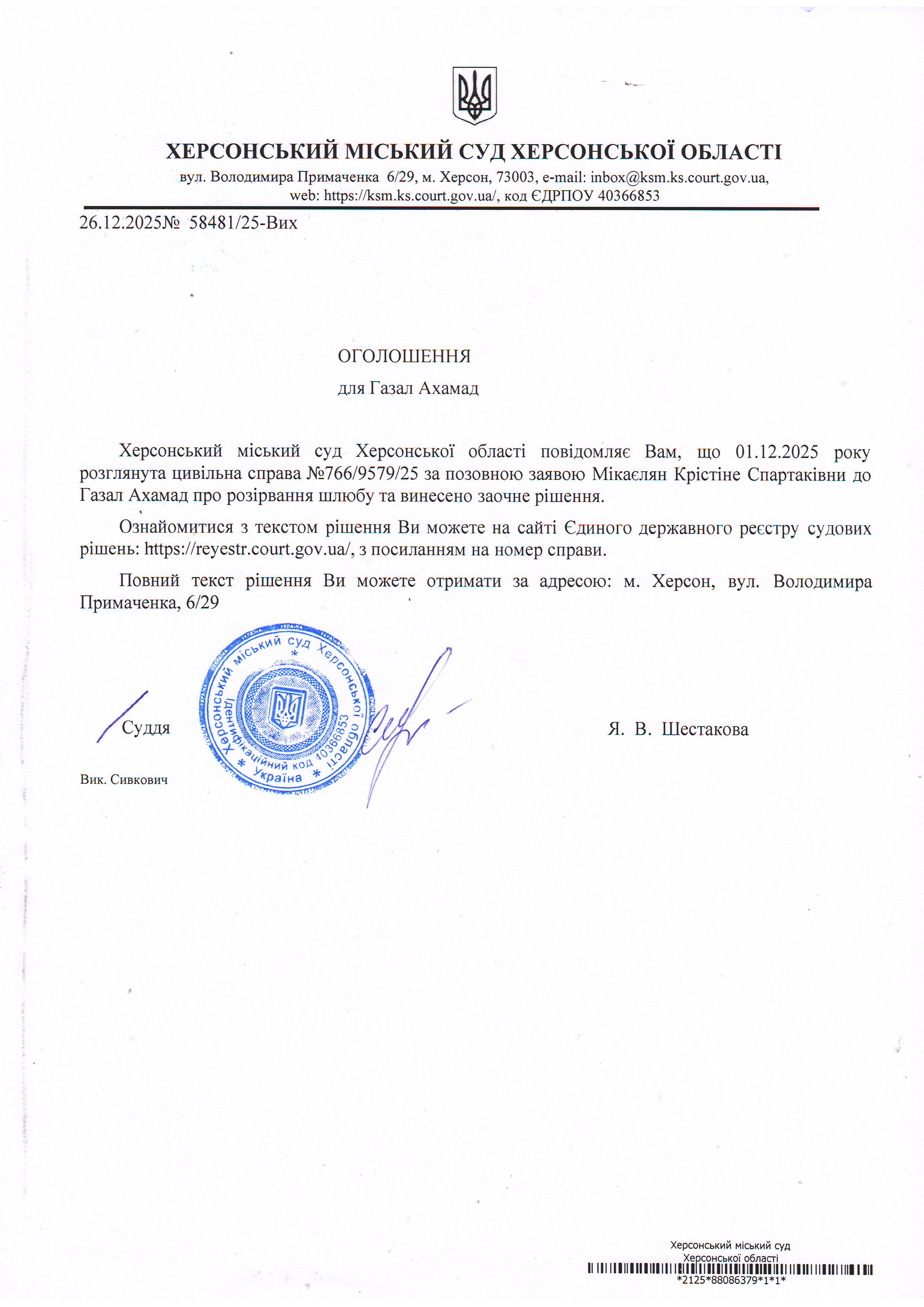 Оголошення для Газала Ахамада про винесення заочного рішення