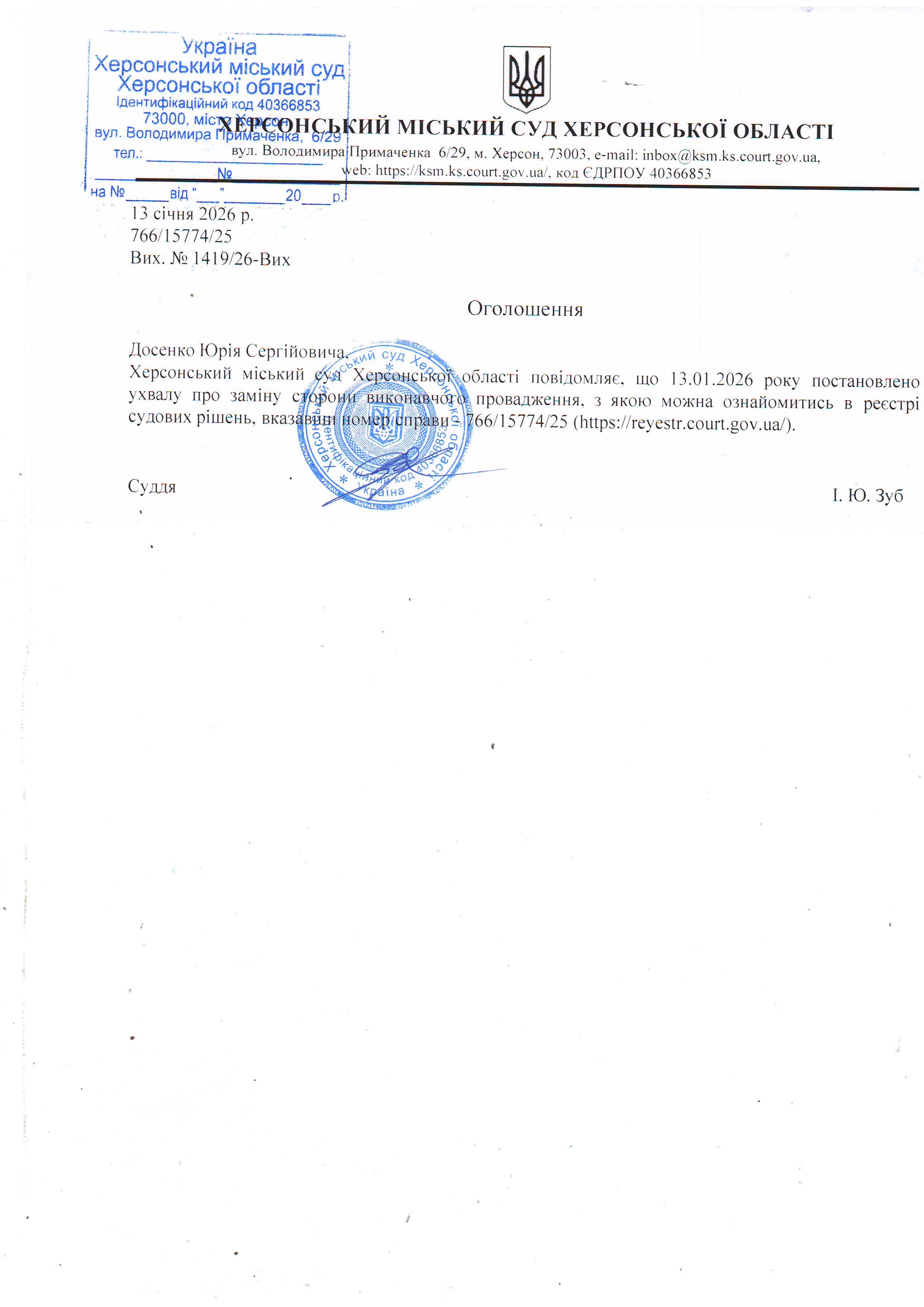 Оголошення для Досенка Юрія Сергійовича про постановлення ухвали