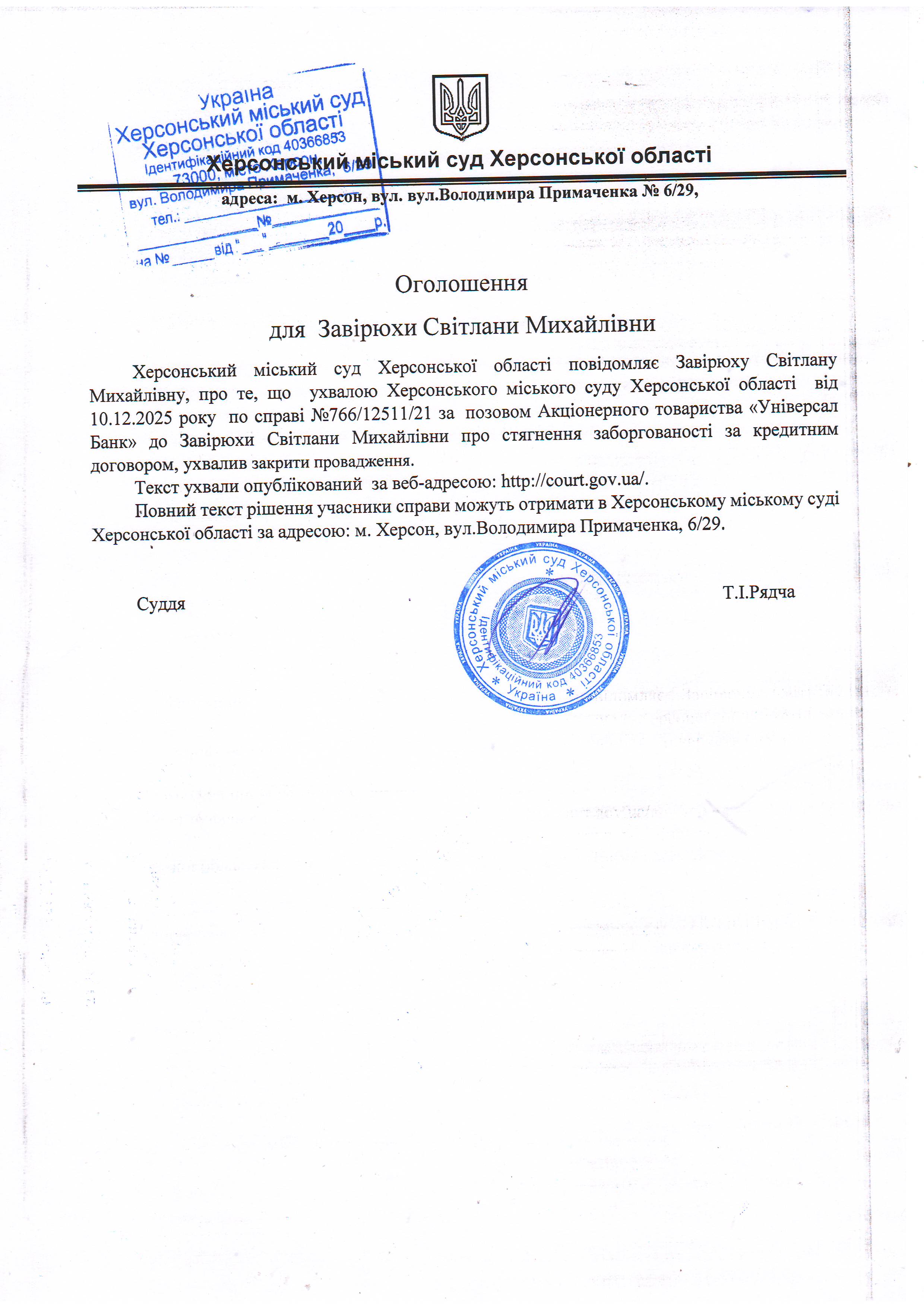 ОГОЛОШЕННЯ, УХВАЛИ ТА ЗАОЧНІ РІШЕННЯ