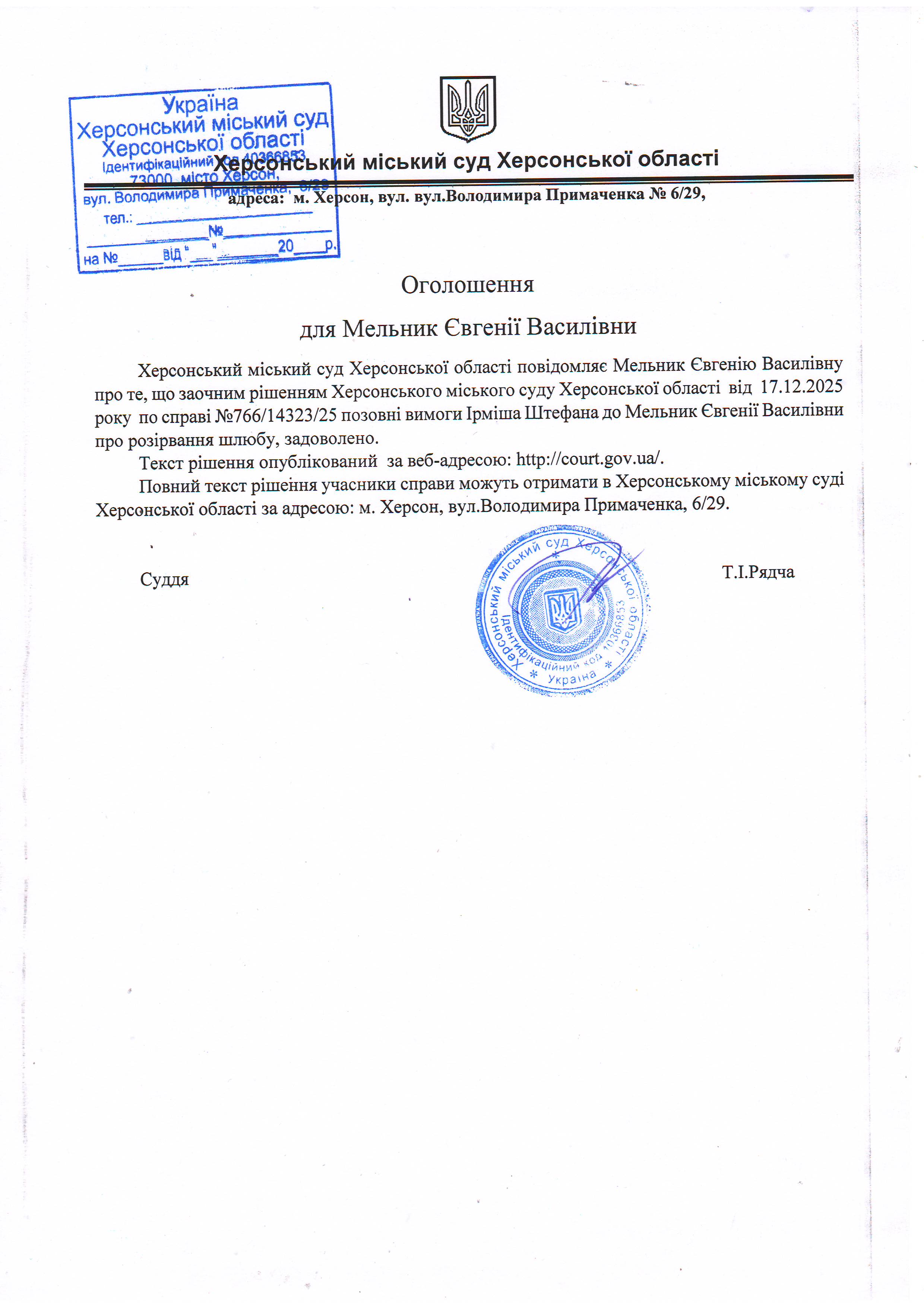 Оголошення про виклик особи в суд та повідомлення про судове рішення