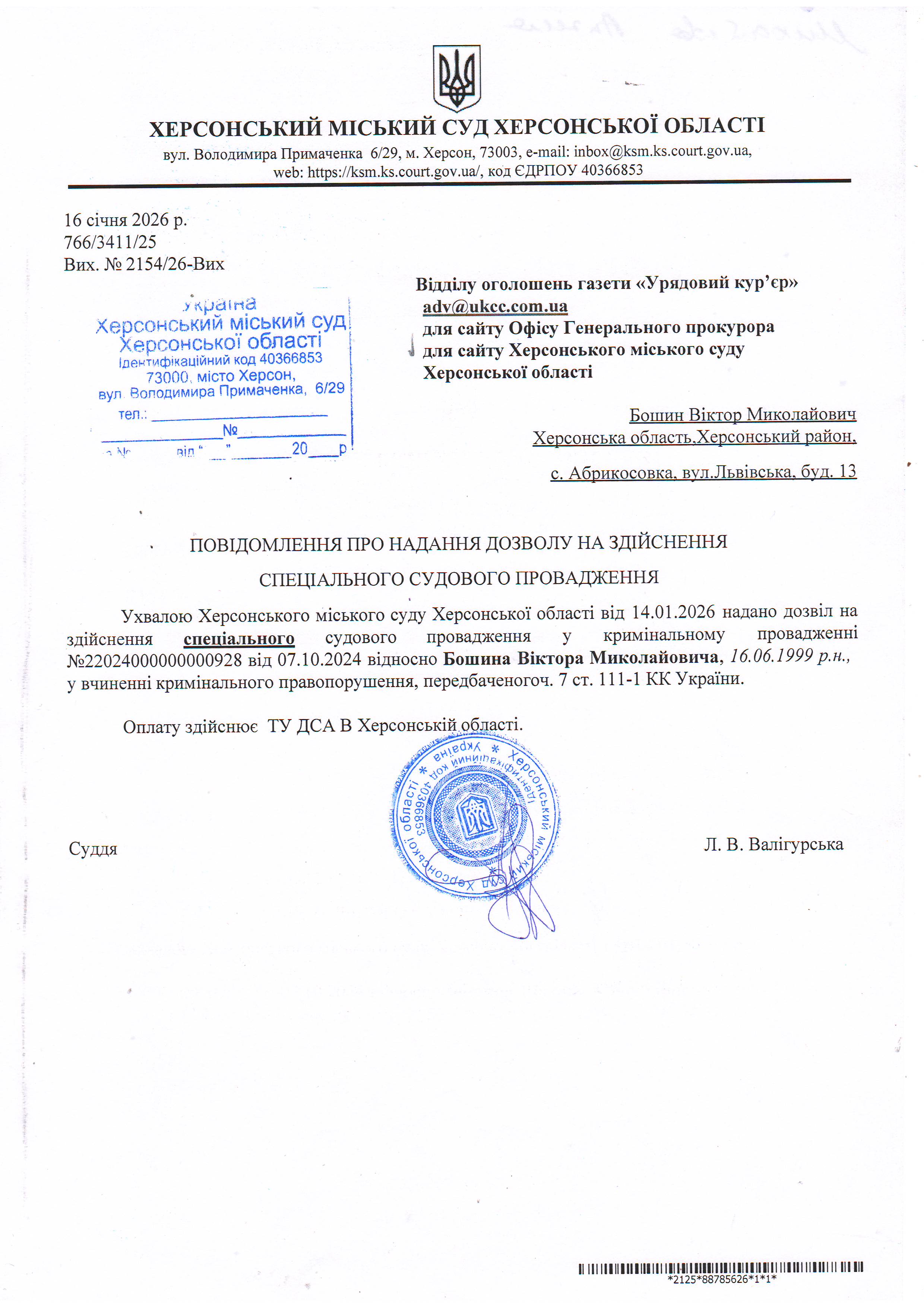 Оголошення про виклик особи в суд та повідомлення про судове рішення