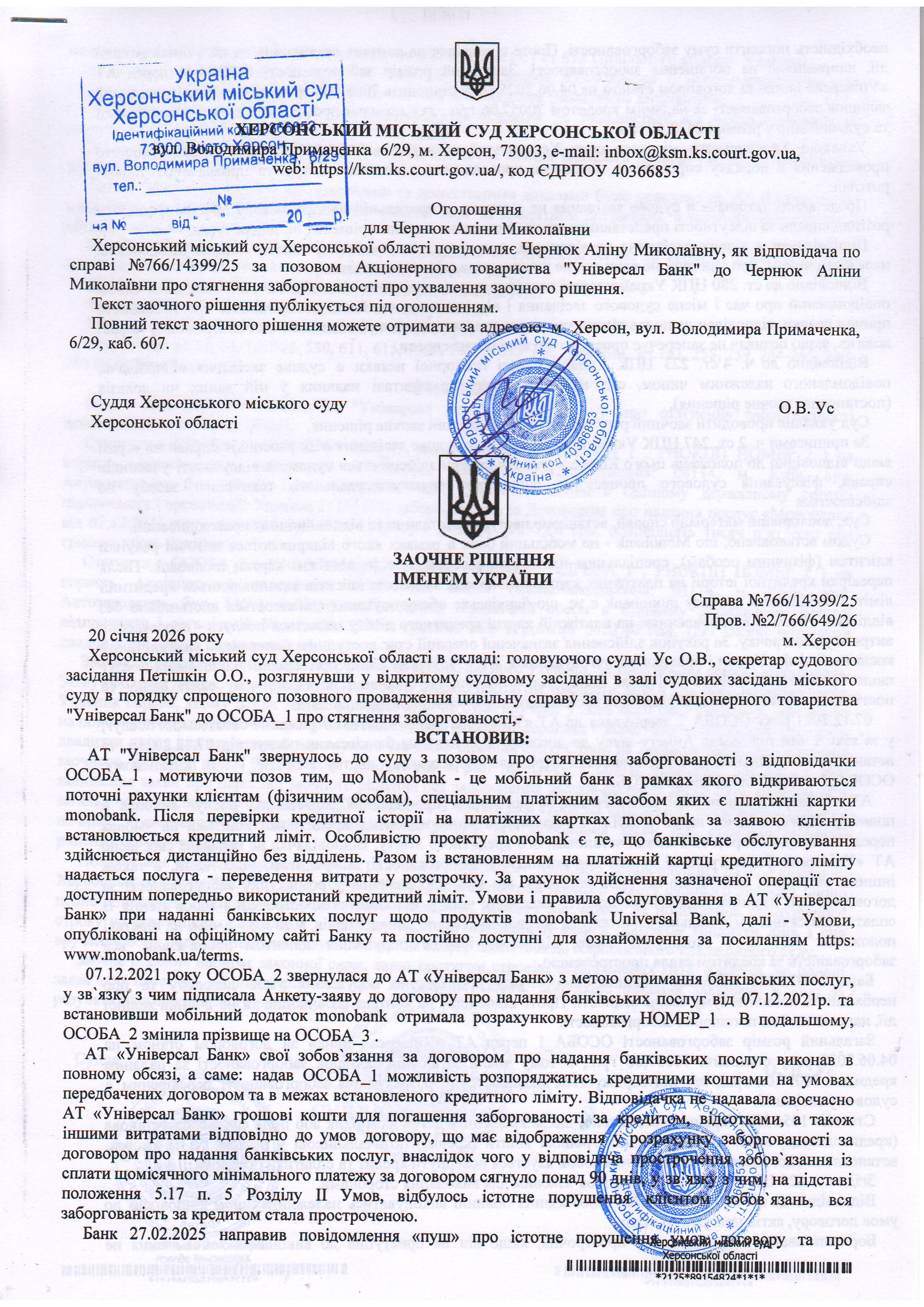ОГОЛОШЕННЯ, УХВАЛИ ТА ЗАОЧНІ РІШЕННЯ