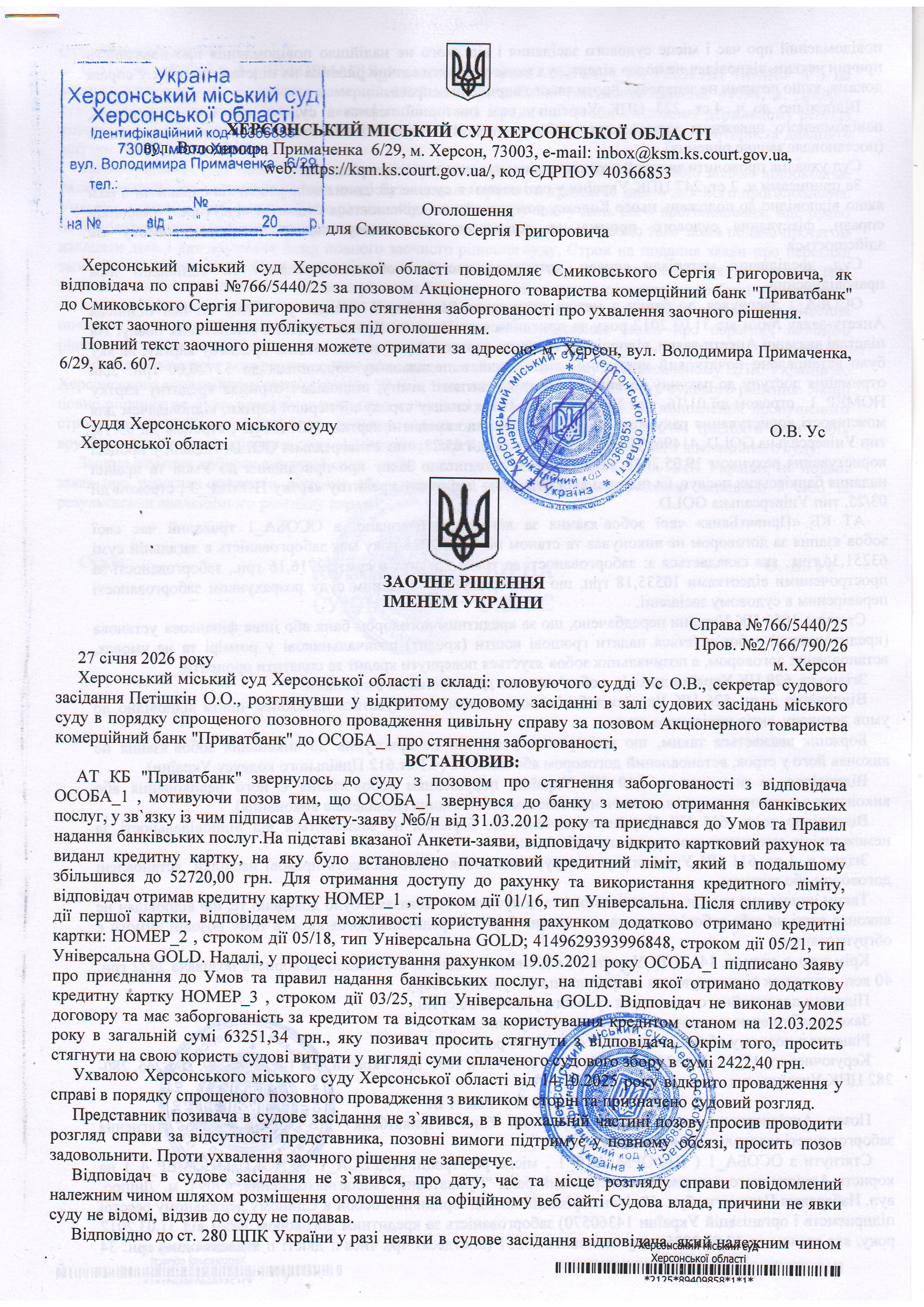 ОГОЛОШЕННЯ, УХВАЛИ ТА ЗАОЧНІ РІШЕННЯ
