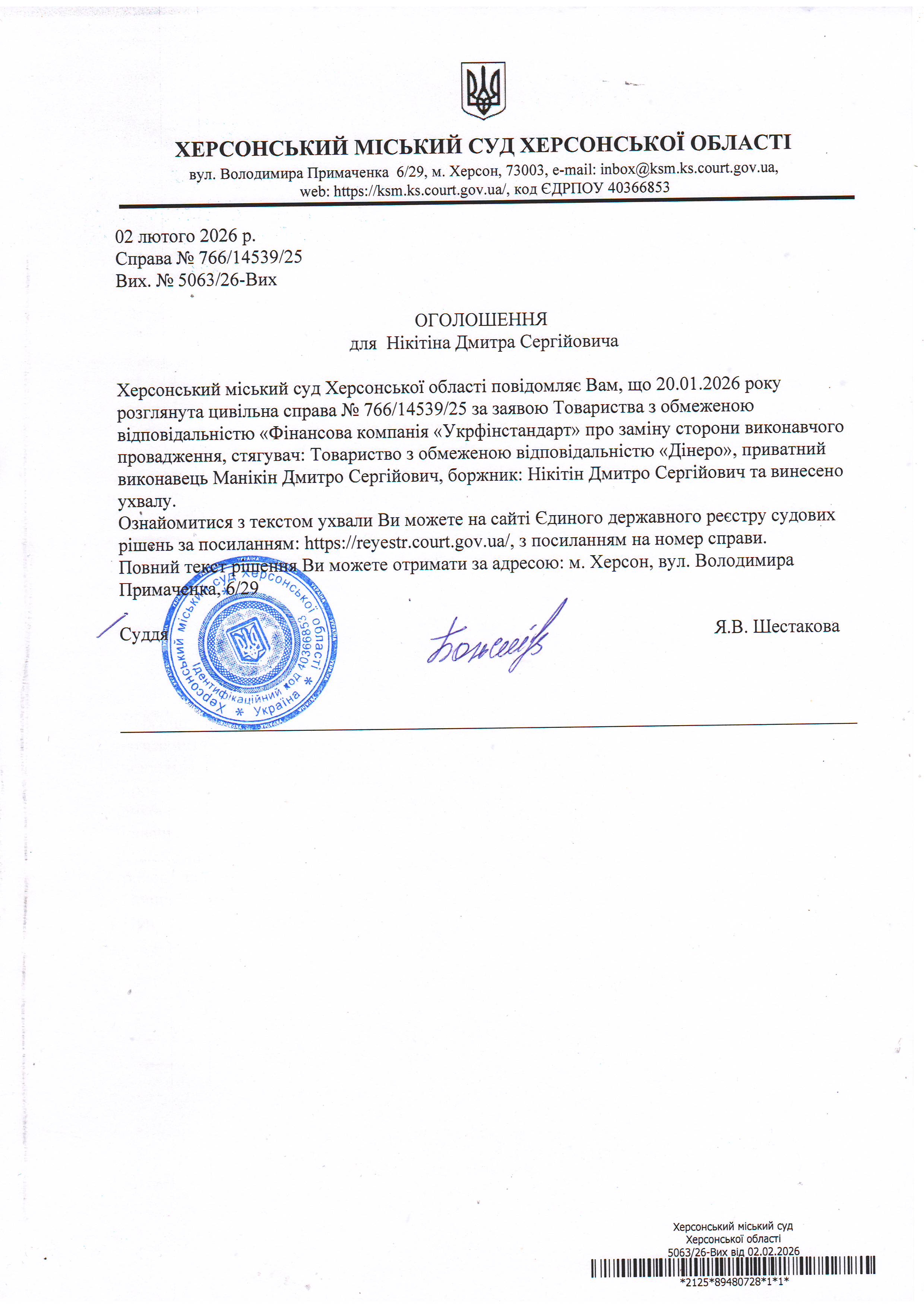 Оголошення для Нікітіна Дмитра Сергійовича про винесення ухвали
