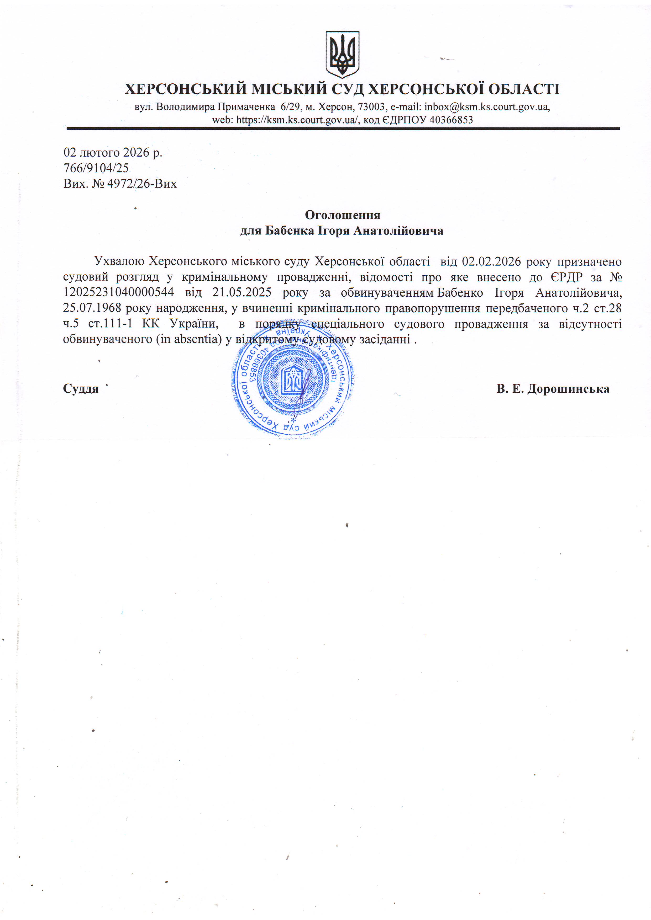 ОГОЛОШЕННЯ ПРО ВИКЛИК ДО СУДУ
