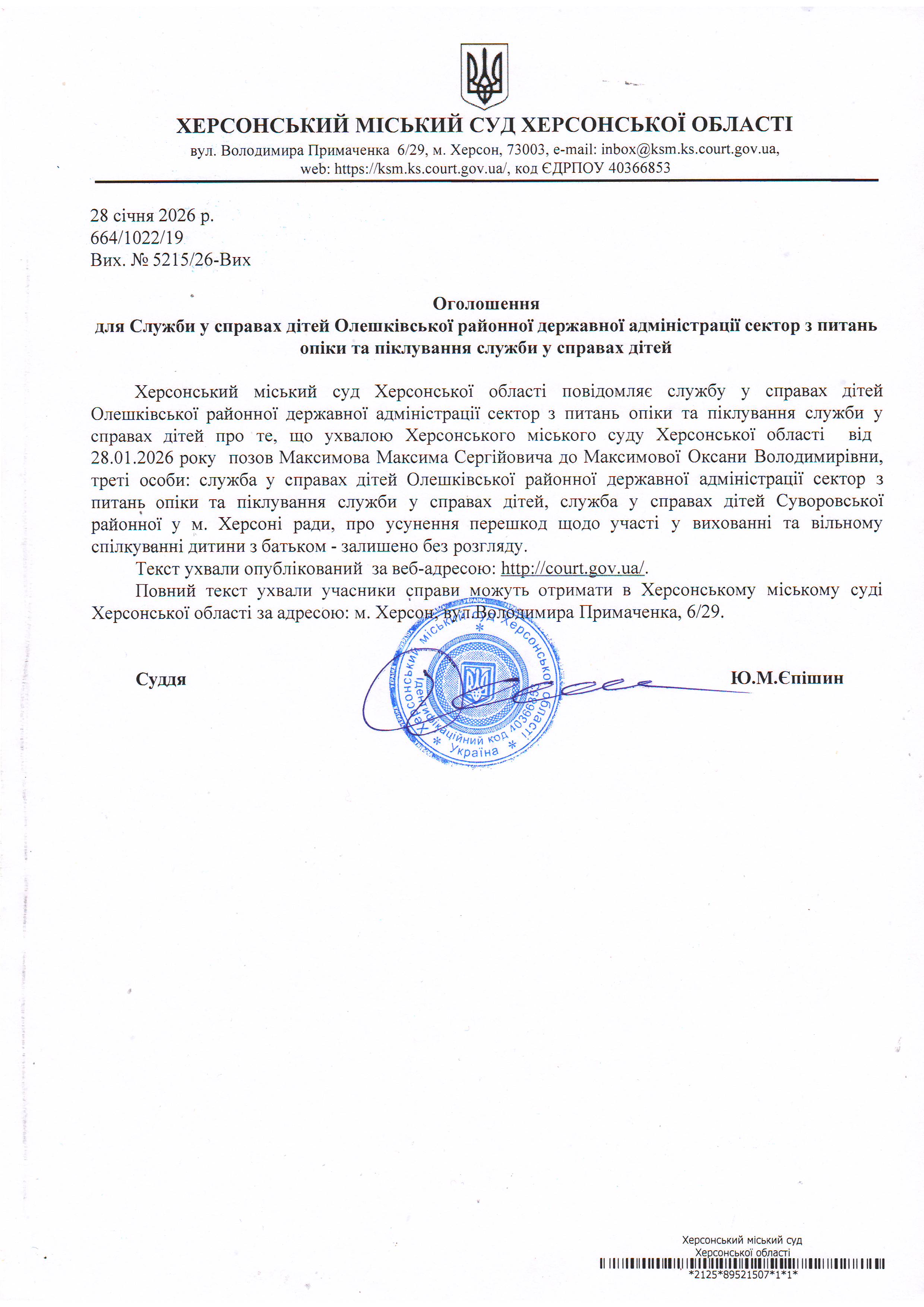 Херсонський міський суд Херсонської області