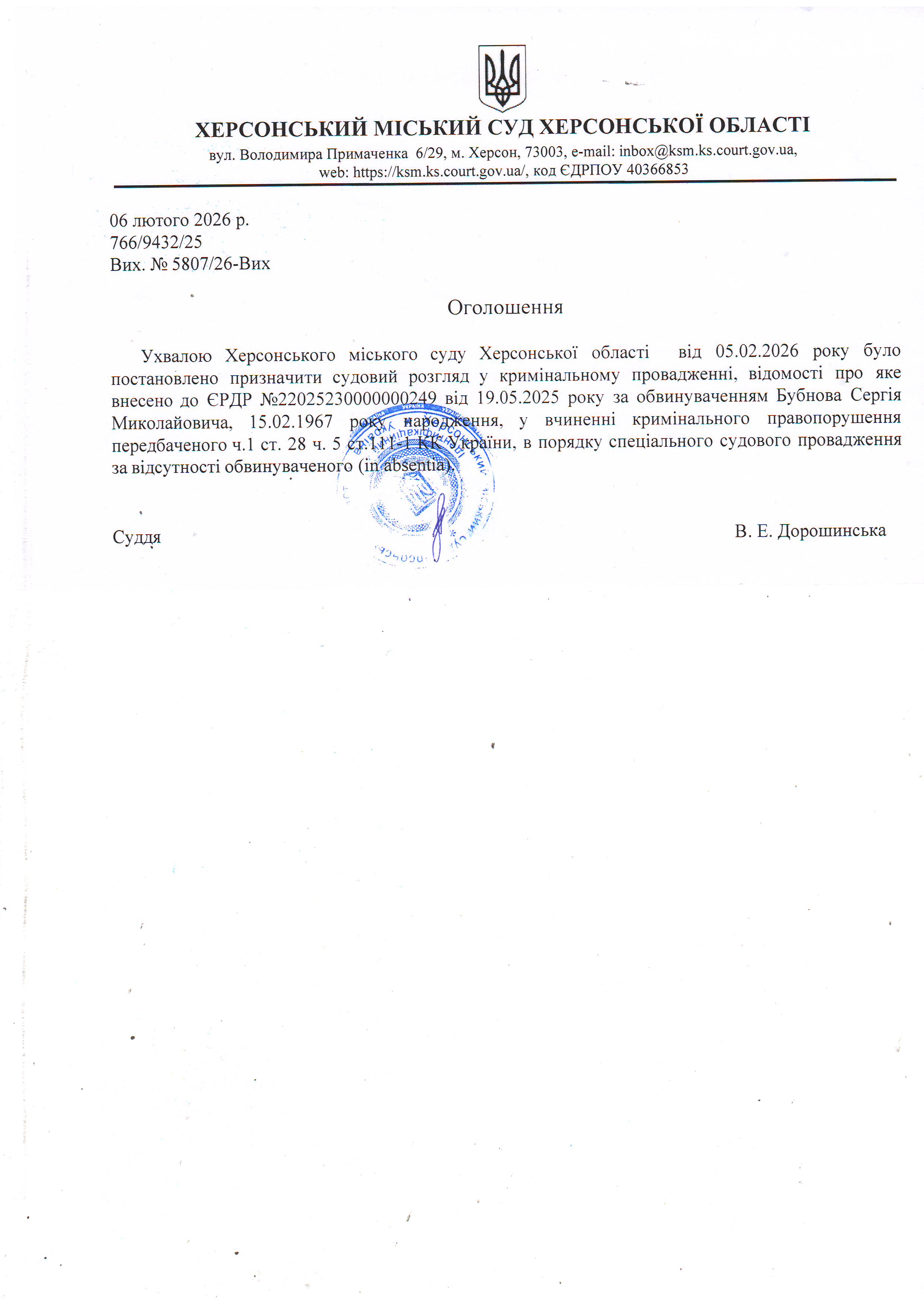 ОГОЛОШЕННЯ ПРО ВИКЛИК ДО СУДУ