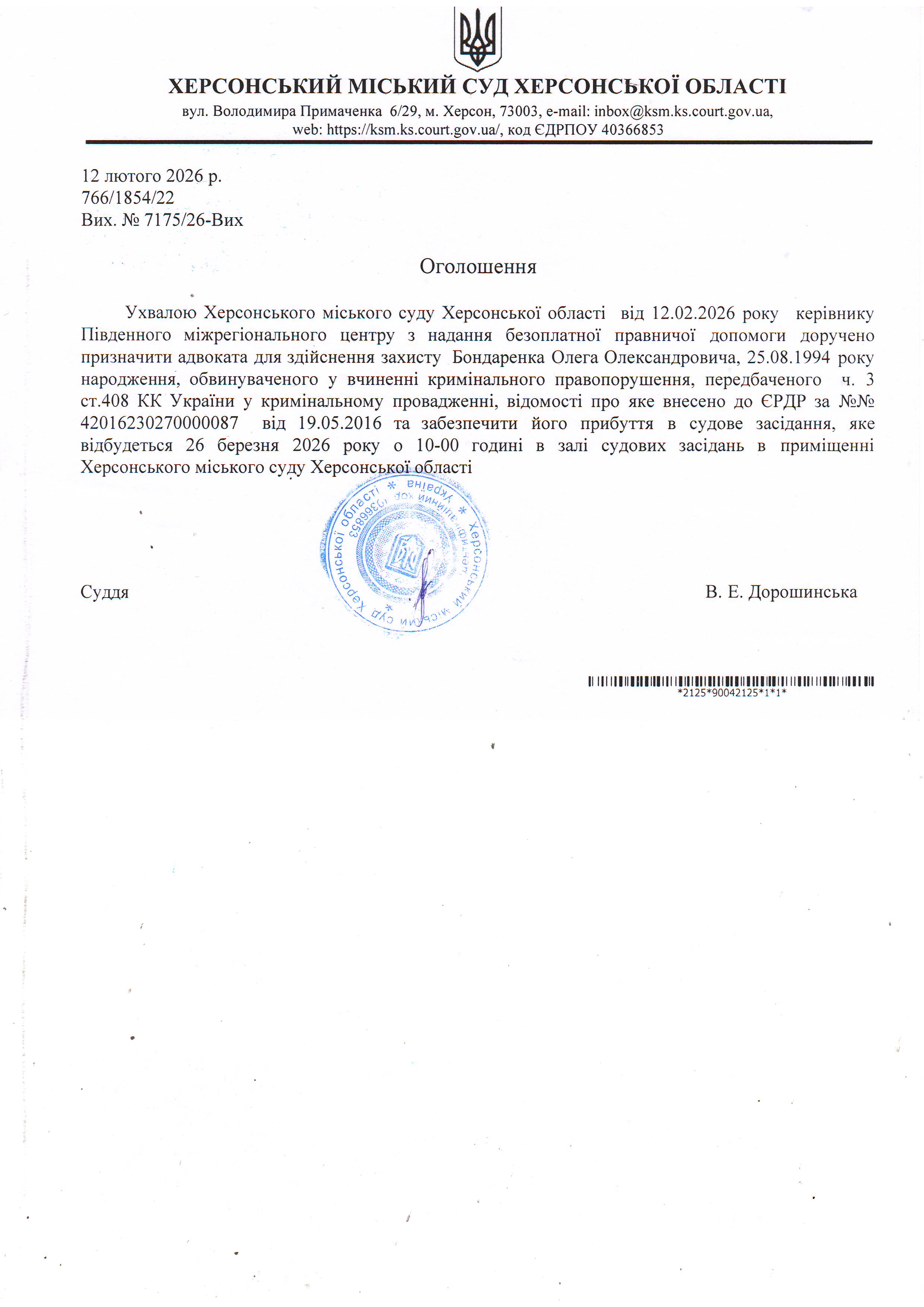 ОГОЛОШЕННЯ ПРО ВИКЛИК ДО СУДУ