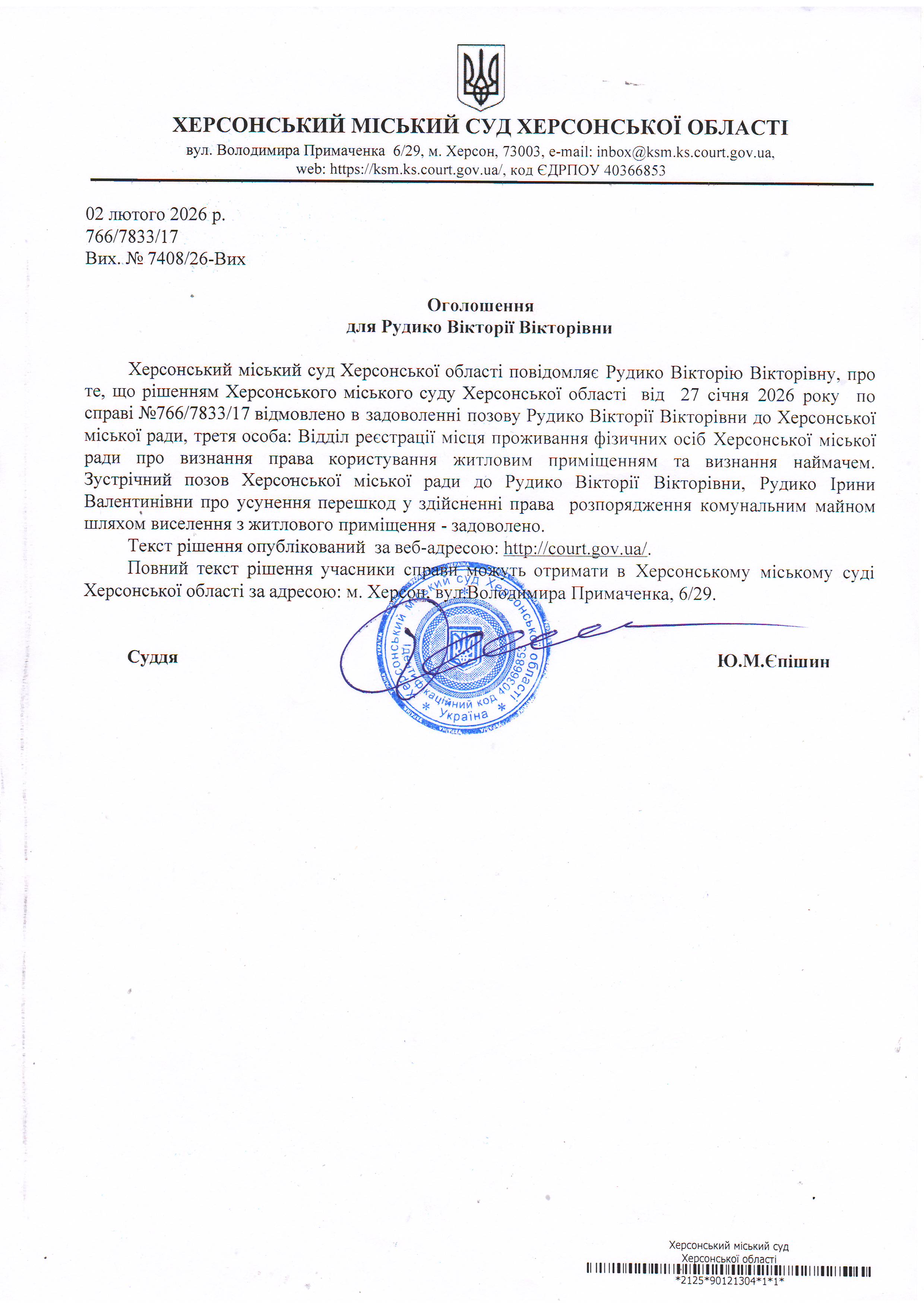Оголошення про виклик особи в суд та повідомлення про судове рішення