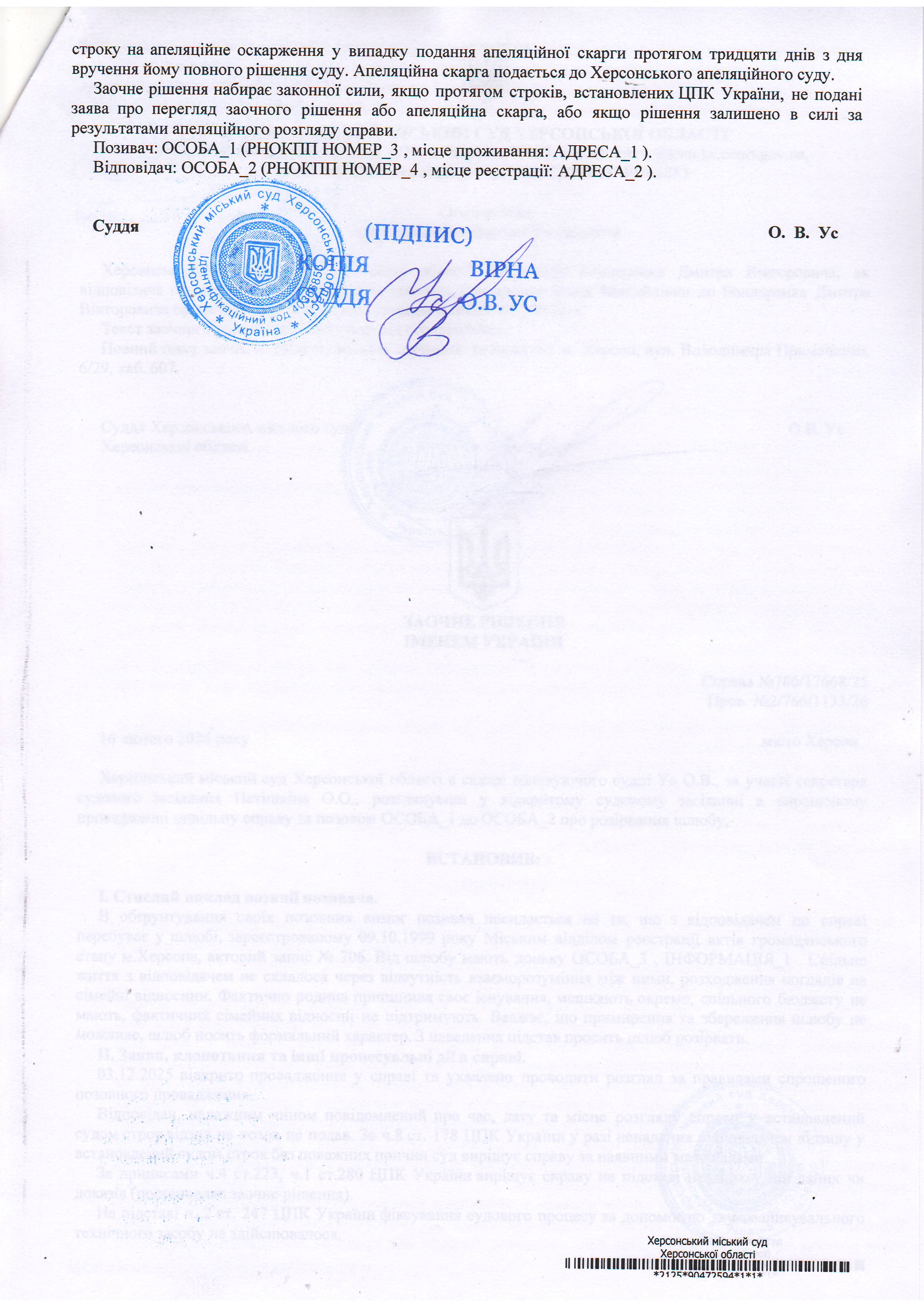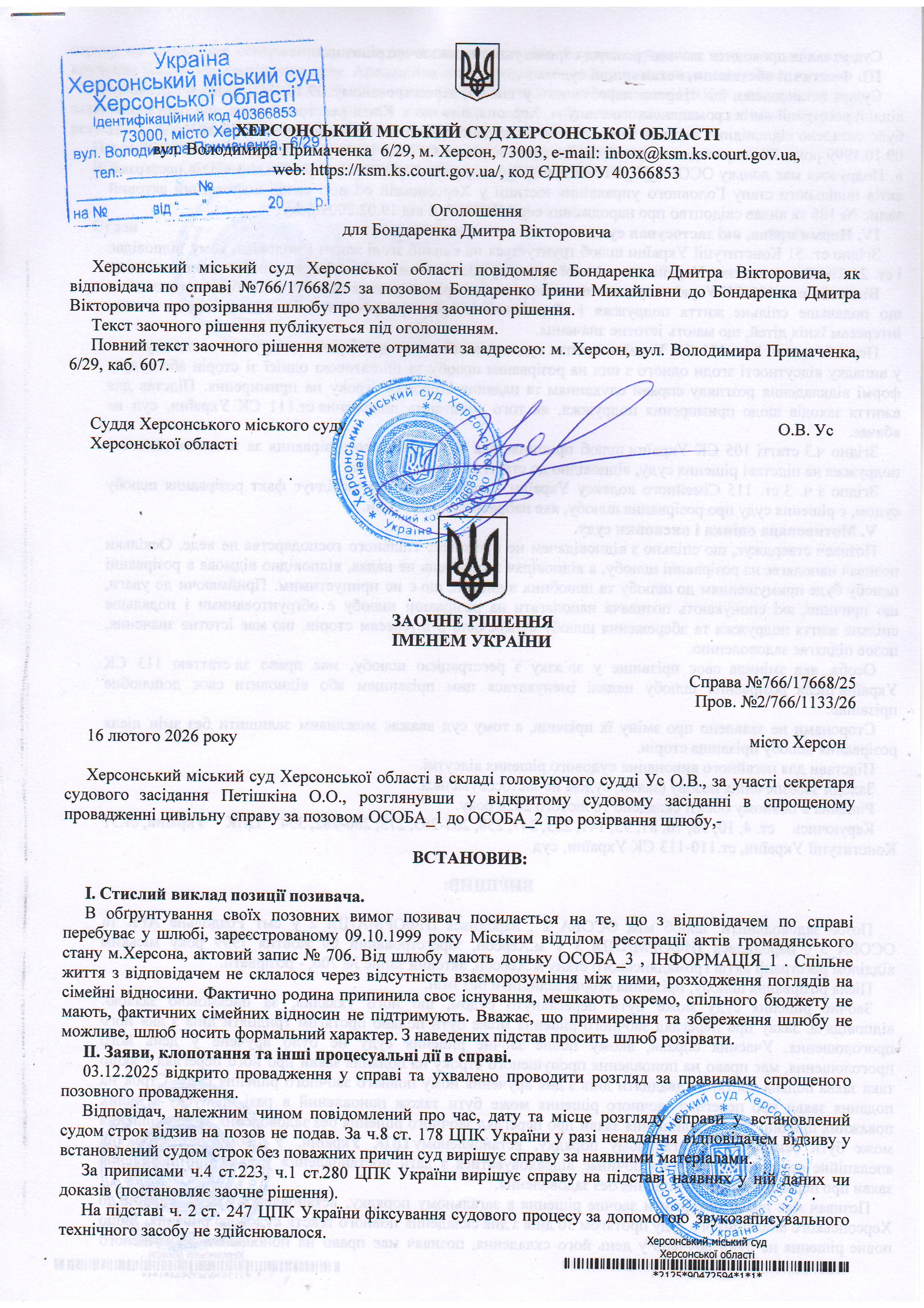 ОГОЛОШЕННЯ, УХВАЛИ ТА ЗАОЧНІ РІШЕННЯ