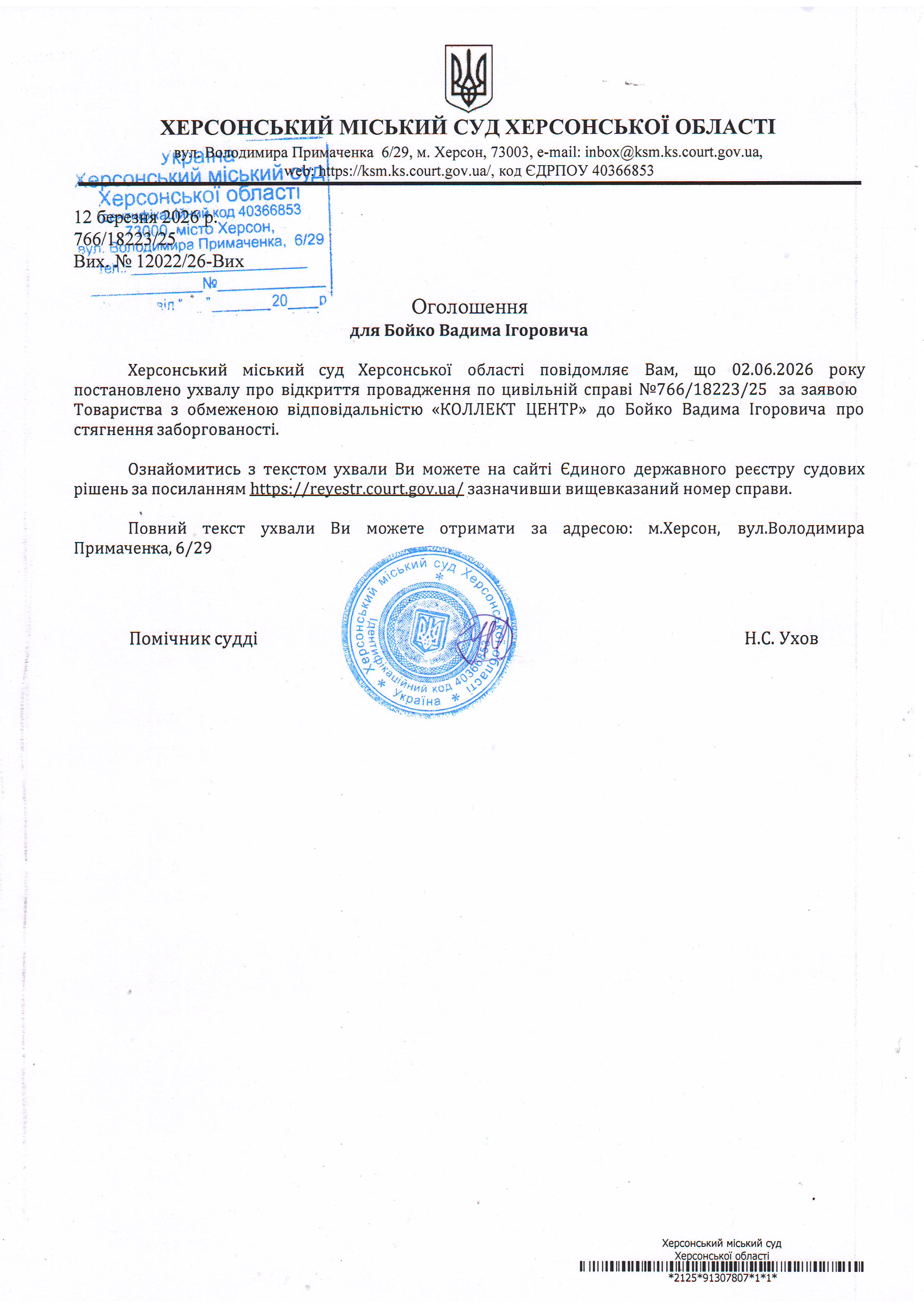 ОГОЛОШЕННЯ, УХВАЛИ ТА ЗАОЧНІ РІШЕННЯ