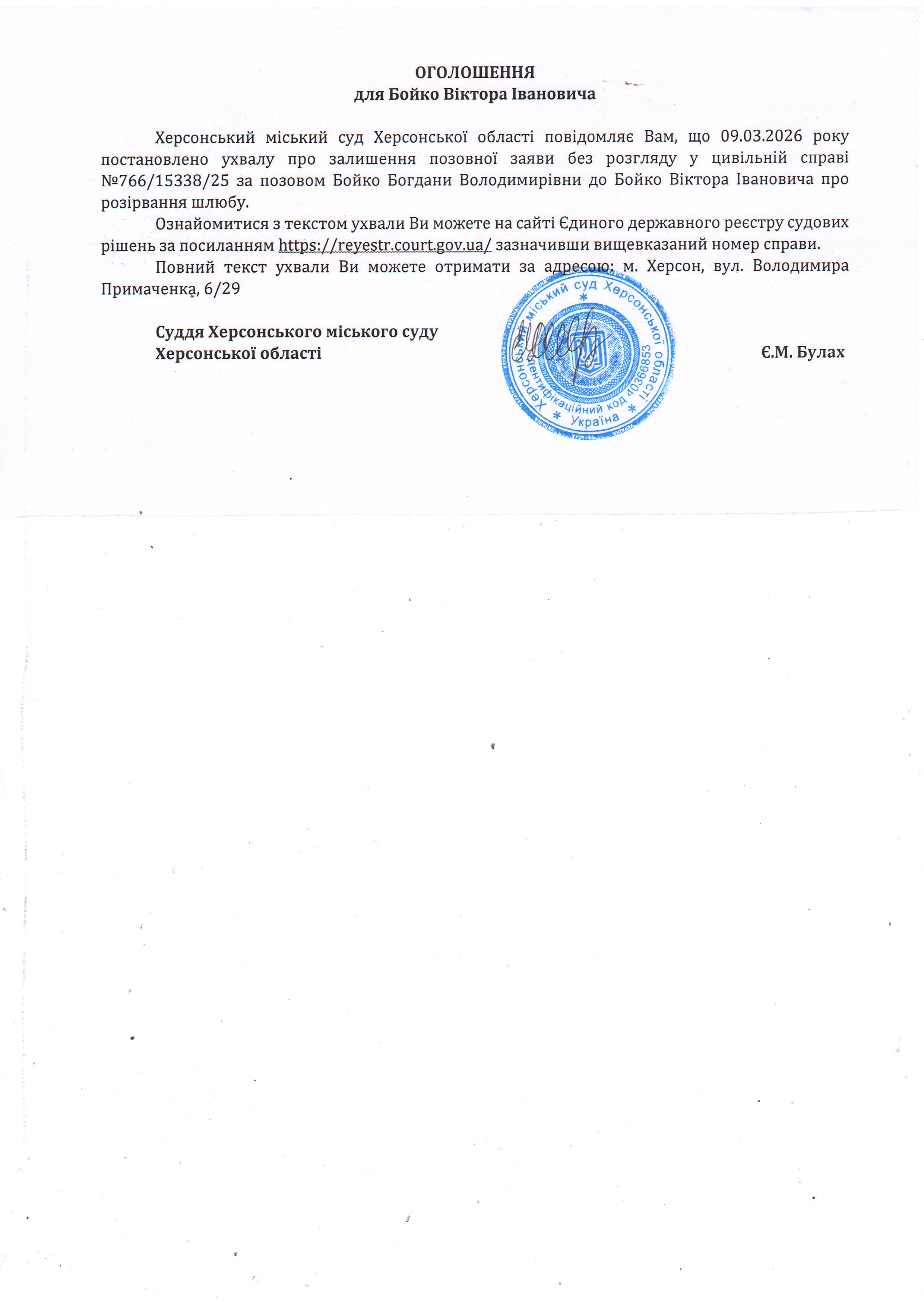 Оголошення для Бойка Віктора Івановича про постановлення ухвали