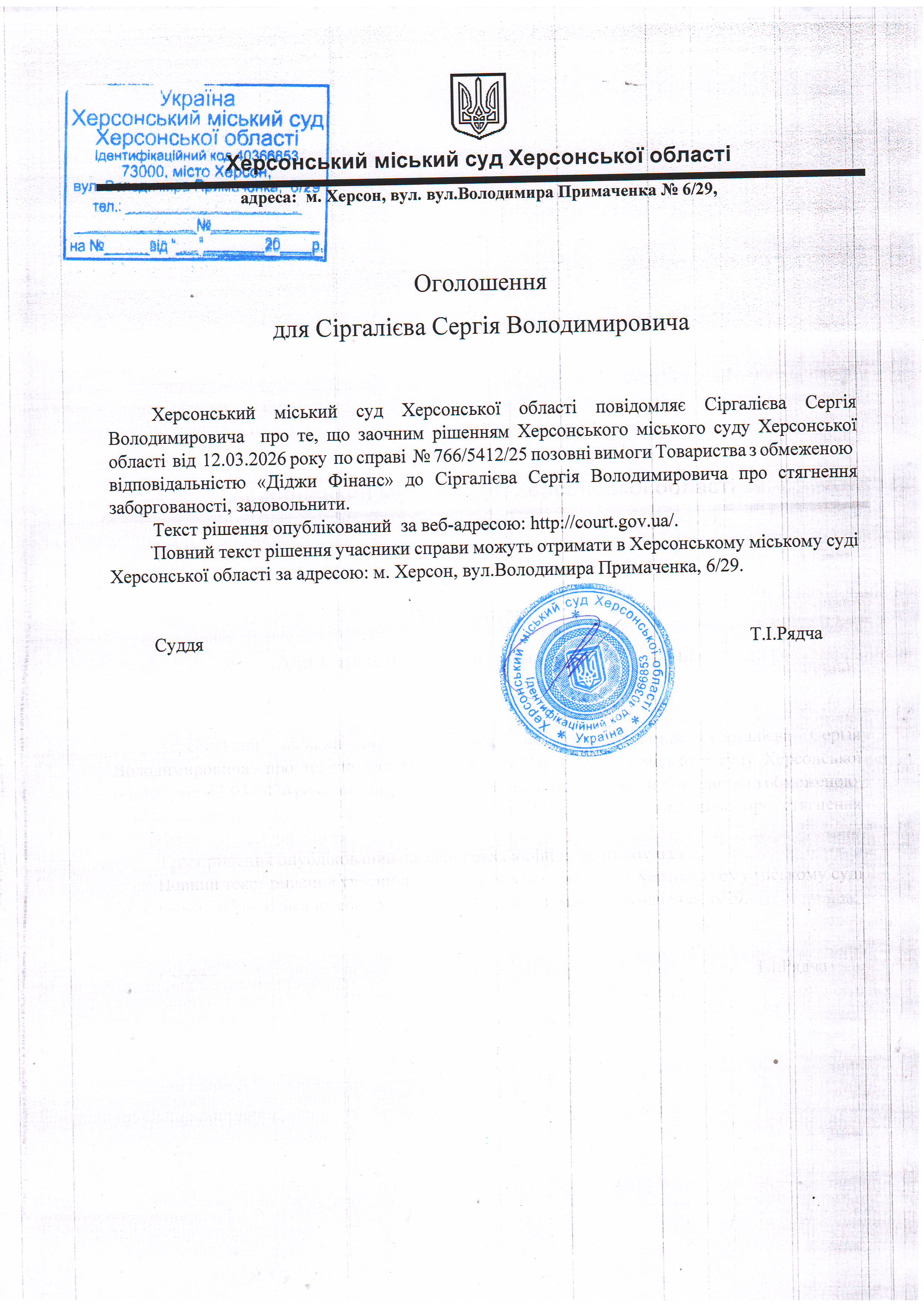 ОГОЛОШЕННЯ, УХВАЛИ ТА ЗАОЧНІ РІШЕННЯ