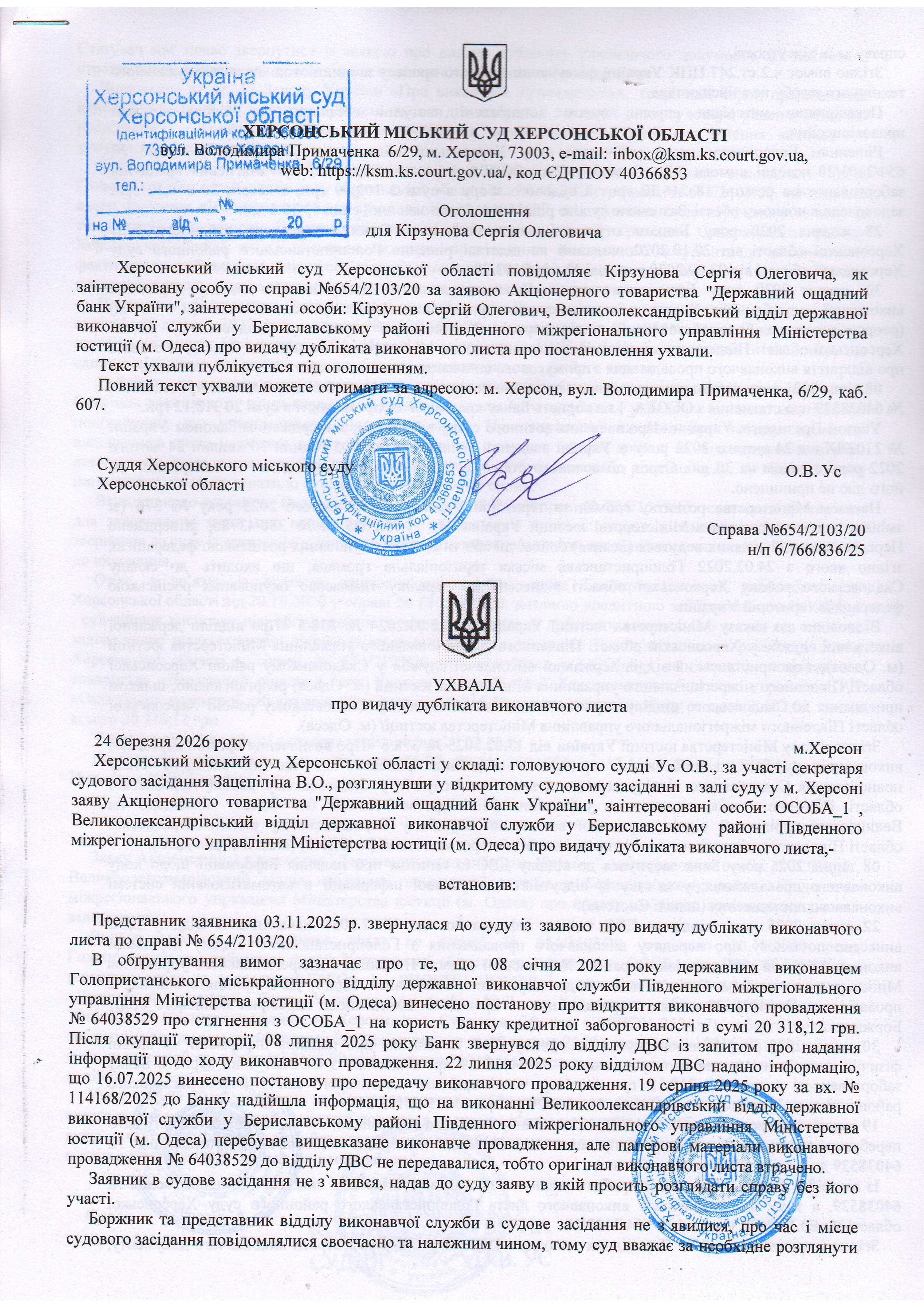 ОГОЛОШЕННЯ, УХВАЛИ ТА ЗАОЧНІ РІШЕННЯ
