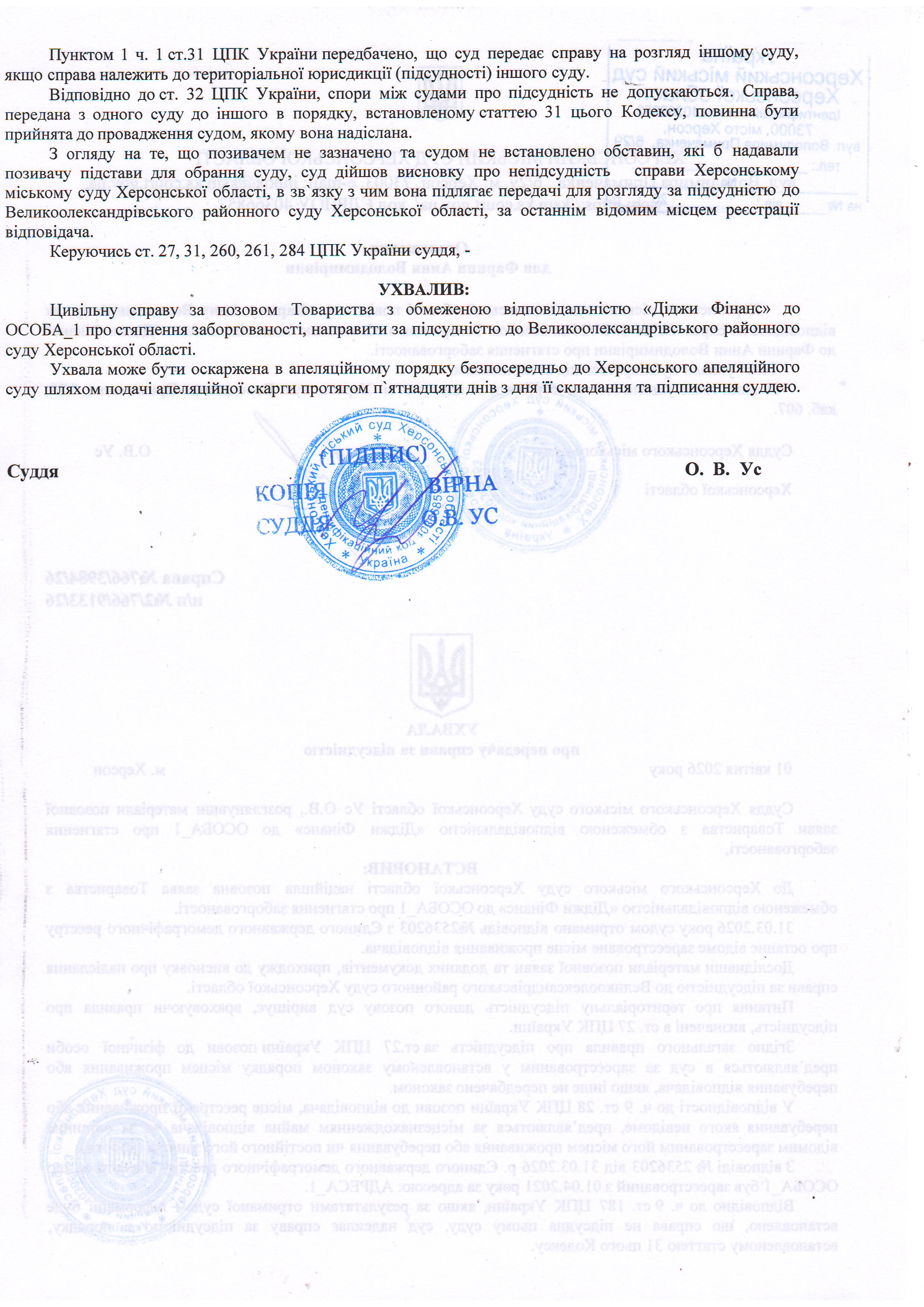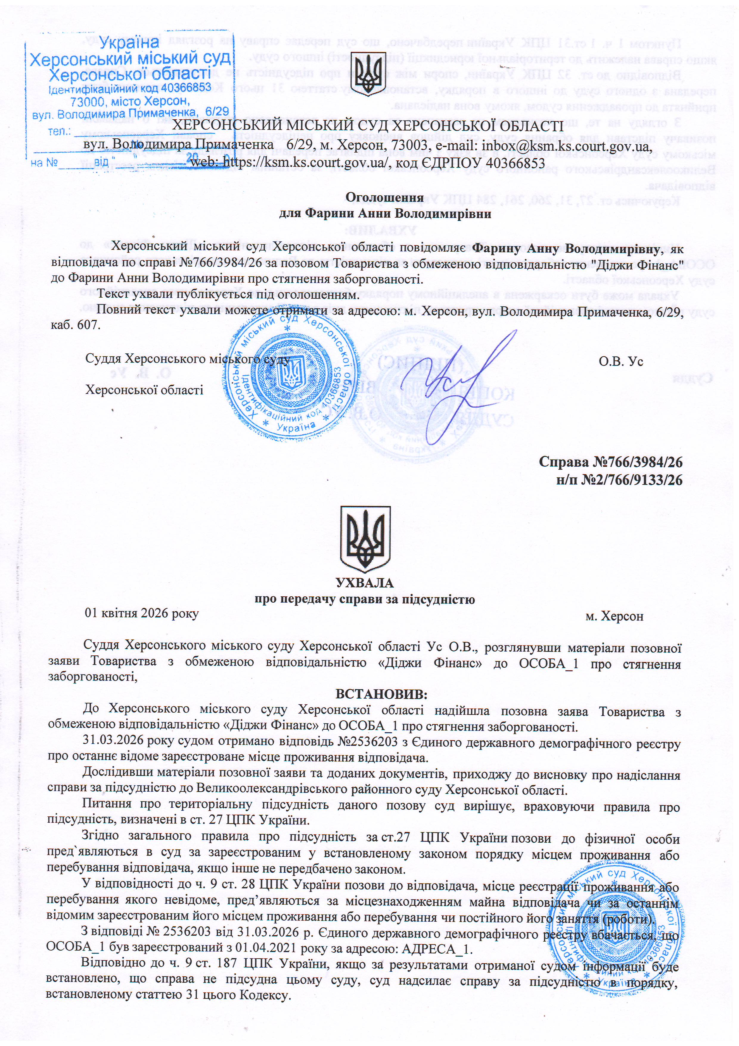 ОГОЛОШЕННЯ, УХВАЛИ ТА ЗАОЧНІ РІШЕННЯ