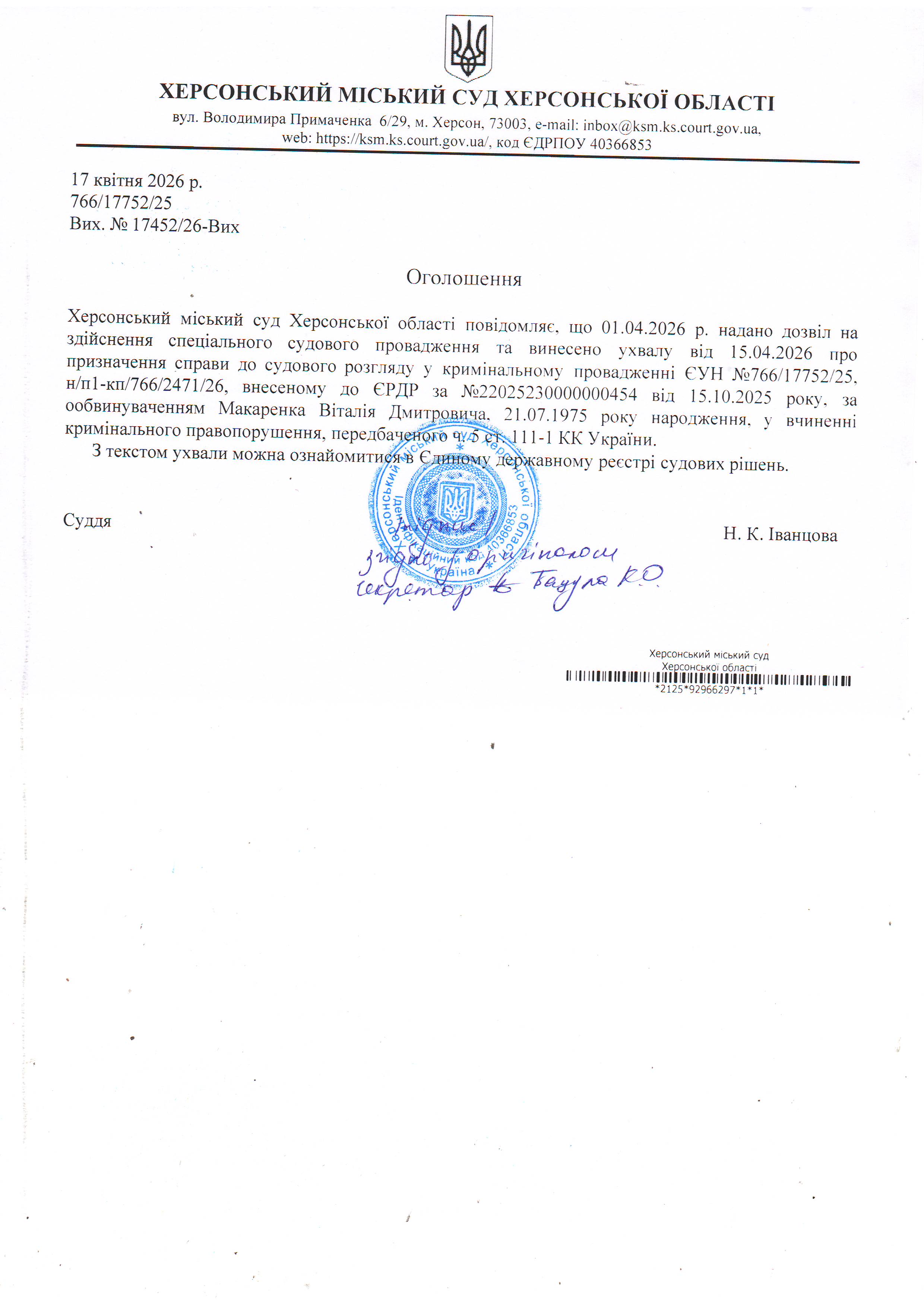 Оголошення про виклик особи в суд та повідомлення про судове рішення