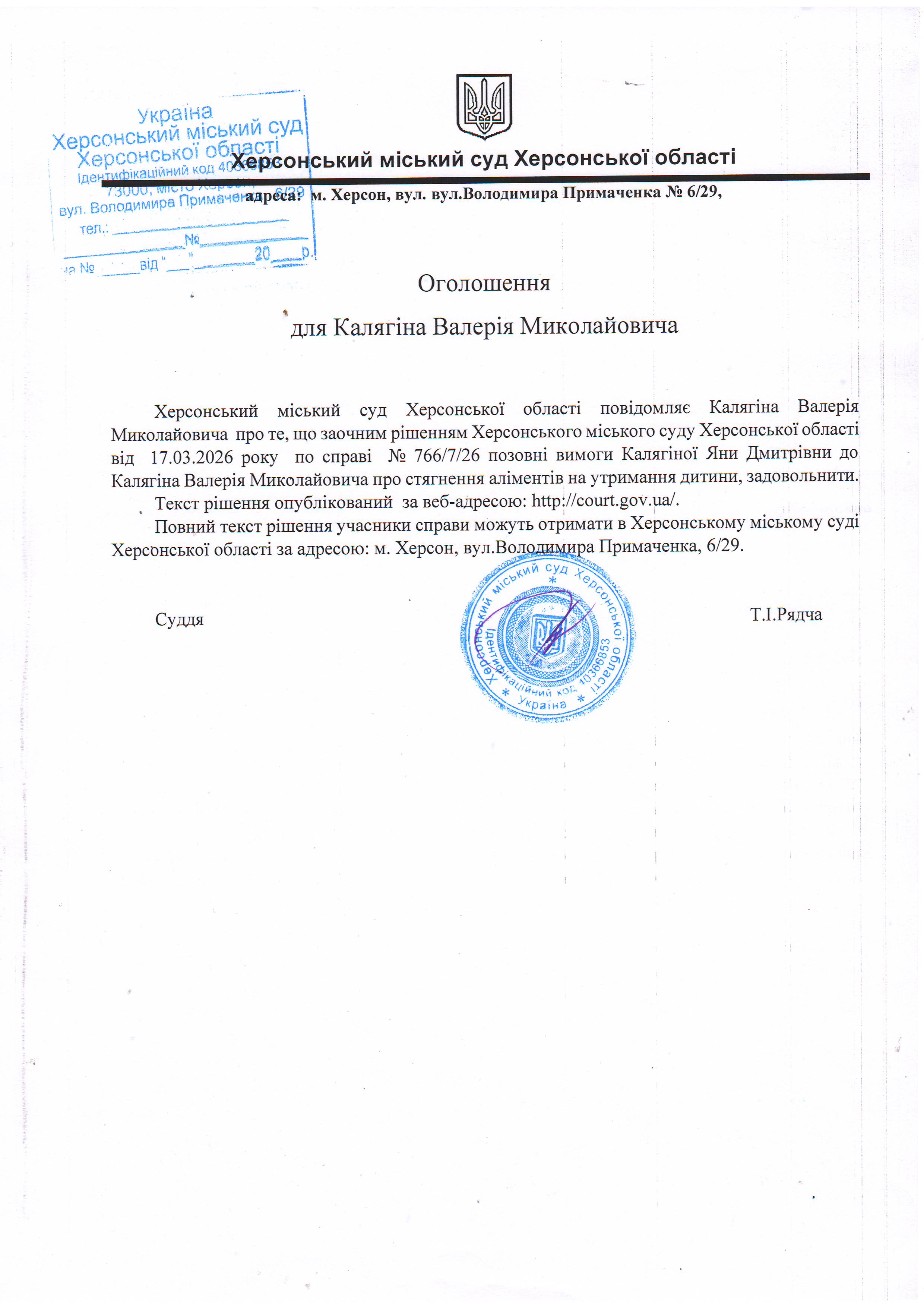 ОГОЛОШЕННЯ, УХВАЛИ ТА ЗАОЧНІ РІШЕННЯ