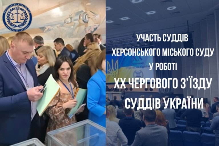 З 08 по 13 березня 2026 року, на підставі запрошення Ради суддів України, двох суддів Херсонського міського суду Херсонської області — Рєпіна Костянтина Константиновича та Хайдарову Інну Олексіївну — було відряджено до міста Києва для участі у роботі ХХ чергового з’їзду суддів України.